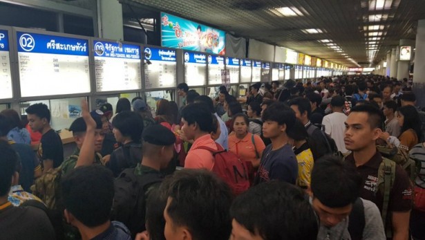 บรรยากาศการเดินทางกลับภูมิลำเนาและท่องเที่ยวของประชาชน ในช่วงเทศกาลสงกรานต์ ที่สถานีขนส่งหมอชิต 2 เช้านี้ ยังคงมีประชาชนทยอยเดินทางเพื่อซื้อตั๋วโดยสารอย่างต่อเนื่อง ในวันหยุดยาวในช่วงเทศกาลสงกรานต์วันแรก โดยเฉพาะของหน่วยงานราชการ และรัฐวิสาหกิจ รวมถึงเอกชนบางแห่ง บริษัท ขนส่ง จำกัด หรือ บขส. คาดว่าวันนี้จะมีประชาชนเดินทางราว 140,000 คน จึงจัดเที่ยววิ่งรองรับรวม 7,697 เที่ยว มั่นใจว่าจะเพียงพอรองรับผู้โดยสารได้ทั้งหมด เพราะจำนวนมากทยอยเดินทางออกต่างจังหวัดไปก่อนหน้าแล้ว สำหรับวานนี้ มีผู้โดยสารเดินทาง 203,067 คน และจัดเที่ยวรถวิ่งรวม 8,991 เที่ยว ขณะเดียวกัน บขส.ยังแจ้งเตือนผู้โดยสาร ให้ซื้อตั๋วโดยสารที่ช่องจำหน่ายตั๋วเท่านั้น อย่าหลงเชื่อกลุ่มมิจฉาชีพที่มาหลอกขายตั๋ว และถ้าพบความผิดปกติสามารถแจ้งเจ้าหน้าที่ได้ทันที โดย บขส.ตั้งจุดรับเรื่องร้องเรียน บริเวณประชาสัมพันธ์ ชั้น 1 และชั้น 3 ภายในสถานีขนส่งหมอชิต 2 จนถึง 13 เมษายนนี้ ( ภาพจาก คมชัดลึก)