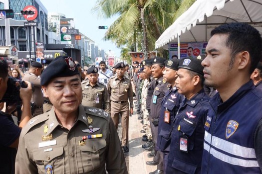 พล.ต.อ.จักรทิพย์ ชัยจินดา ผู้บัญชาการตำรวจแห่งชาติ พร้อมคณะ เดินทางด้วยเฮลิคอปเตอร์ มาลงที่สนามกีฬาโรงเรียนบางละมุง จ.ชลบุรี เพื่อตรวจเยี่ยมกำลังพลและรณรงค์สร้างความ เชื่อมั่นช่วงเทศกาลสงกรานต์ประจำปี 2561แก่นักท่องเที่ยวเพื่อพัฒนาการท่องเที่ยวอย่างยั่งยืน จากนั้น ผู้บัญชาการตำรวจแห่งชาติ พร้อมคณะ นั่งรถตู้มายังจุดอำนวยความสะดวกนักท่องเที่ยว ริมหาดพัทยา ปากซอย 13/1 ถนนเลียบชายหาด และบริเวณท่าเทียบเรือท่องเที่ยวพัทยาใต้ มอบน้ำดื่ม และเครื่องดื่มบำรุงกำลัง ให้ตัวแทนเจ้าหน้าที่หน่วยงาน ต่างๆ เพื่อเป็นขวัญและกำลังใจในการทำงาน และทักทายนักท่องเที่ยว ผู้บัญชาการตำรวจแห่งชาติ ให้สัมภาษณ์ว่า เทศกาลสงกรานต์ในปีนี้ นายกรัฐมนตรี มีความ ห่วงใยประชาชนที่จะเดินทางไปท่องเที่ยวและกลับภูมิลำเนา จึงสั่งให้เจ้าหน้าที่ตำรวจ ดูแลและอำนวยความสะดวกประชาชนให้ดีที่สุด โดยเอาข้อมูลของปีที่แล้ว มาแก้ไขเพื่อ ให้เกิดความปลอดภัยในชีวิตและทรัพย์สิน ส่วนเมืองท่องเที่ยว มีความห่วงใยเรื่องของ ความปลอดภัยของนักท่องเที่ยว รวมถึงการไม่เอารัดเอาเปรียบนักท่องเที่ยว ซึ่งได้กำชับ เจ้าหน้าที่ตำรวจที่เกี่ยวข้อง ดูแลไว้หมดแล้วเช่นกัน