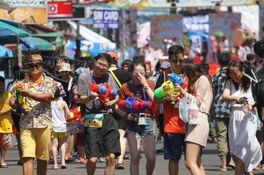 ที่ถนนข้าวสารในวันนี้ เริ่มมีนักท่องเที่ยวทั้งชาวไทยและชาวต่างชาติ เล่นน้ำสงกรานต์คลายร้อนกันแล้ว ส่วนใหญ่ต่างสวมเสื้อลายดอก ถือปืน เดินเล่นฉีดน้ำกันทั้งบริเวณถนนข้าวสาร และถนนรามบุตรี อย่างไรก็ตาม นักท่องเที่ยวชาวต่างชาติบางส่วนยังแต่งกายล่อแหลม นุ่งกางเกงขาสั้น สวมเสื้อสายเดี่ยว เจ้าหน้าที่ต้องประชาสัมพันธ์ให้ทราบ พล.ต.อ.วิระชัย ทรงเมตตา รองผู้บัญชาการตำรวจแห่งชาติ และโฆษกสำนักงานตำรวจแห่งชาติ ลงพื้นที่ตรวจสอบและพูดคุยกับนักท่องเที่ยว ขอความร่วมมือให้เล่นสงกรานต์อย่างปลอดภัย สร้างภาพลักษณ์ที่ดีต่อการท่องเที่ยว โดยกล่าวว่า ระหว่างวันที่ 13-15 เมษายน สำนักงานตำรวจแห่งชาติ จะบังคับใช้กฎหมายอย่างจริงจัง และใช้มาตรการ 4 ป.1 ส. คือ ไม่แป้ง ไม่โป๊ ไม่เปลือย ไม่ปืนแรงดันสูง และไม่ดื่มสุรา ถ้าพบนักท่องเที่ยวฝ่าฝืน แต่งตัวโป๊ไม่เหมาะสม จะจับปรับไม่เกิน 5,000 บาท , มีการลวนลามทำอนาจาร จะแจ้งข้อหากระทำอนาจารทันที ระวังโทษจำคุกไม่เกิน 10 ปีปรับไม่เกิน 200,000 บาท และถ้าพบการจำหน่าย ปืนฉีดน้ำแรงดันสูง จะมีโทษจำคุกไม่เกิน 6 เดือน ปรับไม่เกิน 50,000 บาท พล.ต.อ.วิระชัย ทรงเมตตา กล่าวด้วยว่า นอกจากนี้ จะตั้งจุดคัดกรอง มีเครื่องตรวจวัตถุระเบิดบริเวณทางเข้าถนนข้าวสารทั้ง 2 ฝั่ง โดยปีนี้จะเริ่มให้เล่นน้ำตั้งแต่เวลา 12.00-21.00 น. พร้อมเน้นย้ำไม่ให้นำอาวุธเข้าพื้นที่โดยเด็ดขาด