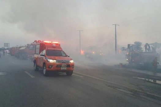 วันนี้ เวลา 17.00 น. เกิดเหตุเพลิงไหม้อย่างรุนแรงที่ร้านค้าไม้เก่า ไม้พาเลท ปลูกสร้างติดกัน 5-6 ร้าน ริมถนนสาย 347 ปทุมธานี-บางปะหัน หลักกิโลเมตรที่ 19+800 เขตตำบลบางกระสั้น อำเภอบางปะอิน จังหวัดพระนครศรีอยุธยา ซึ่งเป็นเส้นทางขาขึ้นภาคเหนือ ก่อนขึ้นสะพาน ข้ามแม่น้ำเจ้าพระยา หรือสะพานเกาะเกิด โดยเพลิงโหมไหม้อย่างรวดเร็วท่ามกลางกลุ่มควันดำลอยหนาทึบ อีกทั้งที่เกิดเหตุยังอยู่ใกล้ปั้มน้ำมัน และหอพัก เจ้าหน้าที่ระดมรถดับเพลิงกว่า 10 คัน เร่งเข้าระงับเหตุ พร้อมปิดการจราจรชั่วคราว และประกาศให้รถยนต์ที่สัญจรในช่วงสงกรานต์ที่จะไปภาคเหนือ ให้เลี่ยงไปใช้ทางหลวง หมายเลข 9 หรือวงแหวนตะวันตก สามารถไปออกที่วงแหวนบางปะอิน และเข้าสู่ถนน สายเอเชีย กระทั่งสามารถควบคุมเพลิงได้ในวงกำจัด เมื่อเวลา 18.30 น. ซึ่งต้องใช้เวลาอีกระยะหนึ่ง เพลิงจึงจะดับสนิท เมื่อเพลิงสงบแล้วเจ้าหน้าที่จะเข้าตรวจสอบสาเหตุและความเสียหายอีกครั้ง เบื้องต้นไม่มีใครได้รับบาดเจ็บ