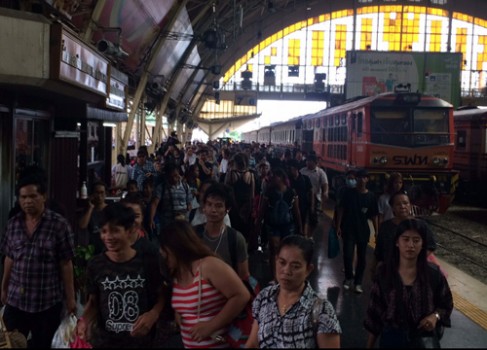 วันหยุดวันสุดท้ายเทศกาลสงกรานต์ 2561 ที่สถานีรถไฟหัวลำโพง ขบวนรถไฟพาผู้โดยสารจากต่างจังหวัดเดินทางกลับกรุงเทพมหานคร ต่อเนื่องแต่เช้ามืด แทบจะทุก 15 นาที ส่งผลให้บรรยากาศคึกคัก คลาคล่ำไปด้วยผู้โดยสารที่มากับรถไฟ ต่างหอบข้าวของ บ้างจูงลูกหลาน และญาติที่ไปรอรับ บางส่วนเดินออกมารอขึ้นรถโดยสารสาธารณะ สำหรับการจราจรยังไม่ติดขัดมากนัก เพราะวันนี้ยังคงเป็นวันหยุดราชการอยู่