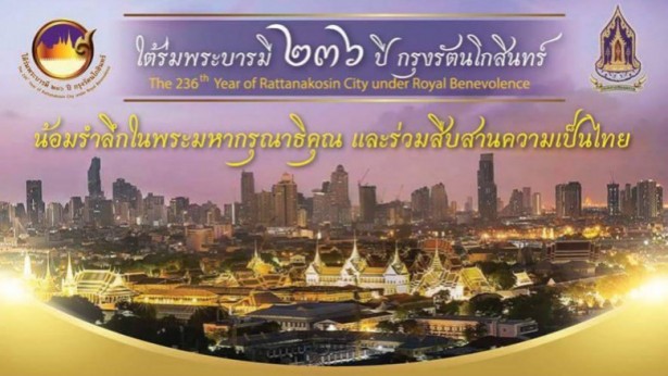 พลตำรวจตรี จิรพัฒน์ ภูมิจิตร รองผู้บัญชาการตำรวจนครบาล เปิดเผยว่า กระทรวง วัฒนธรรม หน่วยงานภาครัฐ และภาคเอกชน จะจัดงานมหกรรมวัฒนธรรมภายใต้ชื่อ "ใต้ร่มพระบารมี 236 ปีกรุงรัตนโกสินทร์" ระหว่างวันที่ 21-25 เม.ย.นี้ ที่บริเวณ ลานพลับพลาพระมหาเจษฎาบดินทร์ ถนนราชดำเนินกลาง โดยช่วงเปิดงานในวันนี้ (21 เม.ย. ) เวลา 17.00-20.30 น. จะมีการเดินริ้วขบวนที่แสดงถึงประวัติความเป็นมา ของกรุงรัตนโกสินทร์และเหตุการณ์สำคัญสมัยรัชกาลที่ 1 ถึงรัชกาลที่ 10 ภายใต้ แนวคิดรัตนโกสินทร์เรืองรอง จำนวน 11 ริ้วขบวน เมื่อริ้วขบวนเริ่มตั้ง จากแยกป้อมมหากาฬ จะใช้ผิวจราจร 3 ช่องทางซ้าย โดยประชาชนยังสามารถวิ่งผ่านได้ตามปกติ โดยจะ มีการแสดงที่หน้าลานพลับพลามหาเจษฎาบดินทร์ จากนั้นจะเคลื่อนขบวนไปบนถนน ราชดำเนินผ่านอนุสาวรีย์ประชาธิปไตย มุ่งหน้าท้องสนามหลวง ถึงแยกศาลหลักเมือง เลี้ยวขวาเข้าถนนหน้าพระลาน เลี้ยวขวาซอยหน้าพระธาตุ ผ่านไปยังมหาวิทยาลัย ธรรมศาสตร์ สิ้นสุดขบวนที่โรงละครแห่งชาติ ซึ่งจะมีการปรับเส้นทางการจราจรในการจอดรถแห่เพื่อเตรียมขบวน ซึ่งจะปิดถนน ราชดำเนินกลางทุกช่องทาง ตั้งแต่บริเวณลานพลับพลามหาเจษฎาบดินทร์ ไปจนถึง อนุสาวรีย์ประชาธิปไตย ประมาณ 17.30 น. และจะทำการ เปิดช่องทางพิเศษ 3 ช่องทาง จากลานพลับพลาถึงอนุสาวรีย์ประชาธิปไตยในถนนราชดำเนินกลางขาเข้า ทั้งนี้ เมื่อขบวนผ่านเลยไป จะเปิดให้วิ่งได้ตามปกติ 3 ช่องทาง เนื่องจากขบวน จะใช้ เพียง 3 ช่องทางซ้ายเท่านั้น สำหรับผู้ที่จะใช้เส้นทางสะพานข้ามแม่น้ำเจ้าพระยา ที่สะพานสมเด็จพระปิ่นเกล้า ให้เลี่ยงไปใช้สะพานพระราม 8 แทนโดยใช้ถนนราชดำเนินนอก