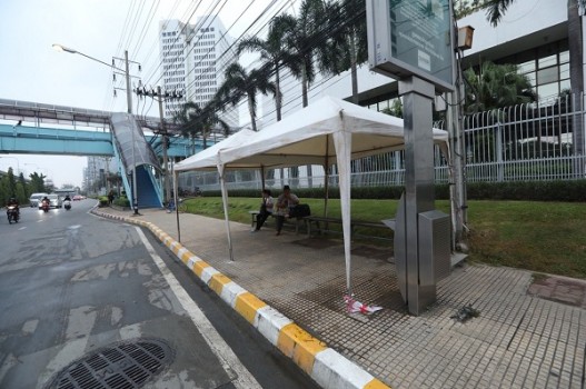 ความคืบหน้า กรณีเกิดพายุฝนและลมกระโชกแรง จนหลังคาที่พักผู้โดยสารรถประจำทาง บริเวณหน้า บริษัท ปตท.จำกัด (มหาชน) สำนักงานใหญ่ ถนนวิภาวดี-รังสิต ขาออก แขวง-เขตจตุจักร กทม.พังถล่มลงมา ค่ำวานนี้ ส่งผลรถ ปอ.สาย 504 วิ่งระหว่างดอนเมือง-รังสิต พังเสียหาย แต่โชคดีที่ไม่มีผู้บาดเจ็บ ทั้งที่มีผู้โดยสารติดฝนรอรถอยู่จำนวนมาก หน่วยงานต่าง ๆ ที่เกี่ยวข้อง ลงพื้นที่ตรวจสอบ แก้ไขปัญหา และเคลียร์พื้นที่เป็นที่เรียบร้อยแล้ว ล่าสุด เช้านี้ กรุงเทพมหานคร โดยเขตจตุจักร นำเต็นท์ชั่วคราวมาติดตั้งเพื่อให้ผู้โดยสารหลบแดด หลบฝน ระหว่างรอรถโดยสาร แต่ถูกฝนกระหน่ำลงมาซ้ำ อย่างไรก็ตาม นายวรพงษ์ ขวาของ หัวหน้าหมวดทางหลวงสุทธิสาร คาดว่าสาเหตุการพังถล่ม น่าจะเกิดจากลมแรงและฝนที่ตกลงมาอย่างหนัก ทำให้มีปริมาณน้ำสะสมจำนวนมาก ประกอบกับแรงลม จึงไม่อาจต้านไหวจึงพังลงมา ซึ่งจะต้องนำแบบโครงสร้างมาตรวจสอบเพื่อหาสาเหตุการถล่มลงมาอย่างละเอียดอีกครั้ง ทั้งนี้ ป้ายรถประจำทางดังกล่าว ปตท.ขออนุญาตก่อสร้างมาประมาณ 10 ปีแล้ว เพื่อมอบให้เป็นสาธารณประโยชน์แก่ประชาชนที่ยืนรอรถ ได้กันแเดด กันฝน และส่งมอบให้ทางหลวงเป็นผู้ดูแล เมื่อ 3 ปีที่แล้วได้ซ่อมบำรุง และใช้งานมาจนถึงปัจจุบัน