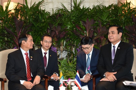 ภารกิจ พล.อ.ประยุทธ์ จันทร์โอชา นายกรัฐมนตรีและหัวหน้าคณะรักษาความสงบแห่งชาติ(คสช.) ระหว่างการเข้าร่วมประชุมสุดยอดอาเซียน ครั้งที่ 32 ที่ประเทศสิงคโปร์ ระหว่างวันที่ 27-28 เมษายน นายกรัฐมนตรี มีโอกาสพบหารือกับ นาย อู วิน มยิน (H.E. U Win Myint) ประธานาธิบดีแห่งสาธารณรัฐแห่งสหภาพเมียนมา ภายหลังเสร็จสิ้นการหารือ พล.ท.วีรชน สุคนธปฏิภาค รองโฆษกประจำสำนักนายกรัฐมนตรี เปิดเผยว่า นายกรัฐมนตรีแสดงความยินดีกับ นายอู วิน มยิน ที่ได้รับเลือกให้ดำรงตำแหน่งประธานาธิบดีคนใหม่ รัฐบาลไทยพร้อมทำงานร่วมกับรัฐบาลเมียนมาทุกด้าน โดยเฉพาะการสร้างเสถียรภาพและความมั่นคงในการพัฒนาพื้นที่ชายแดน เพื่อความมั่นคง มั่งคั่ง และยั่งยืน ของทั้งสองประเทศ นายกรัฐมนตรีเสนอให้เมียนมา เร่งกระบวนการลงทะเบียนแรงงานให้แล้วเสร็จ ตามระยะเวลาที่กฎหมายกำหนด เฝ้าระวังการลักลอบขนยาเสพติดตามแนวชายแดน และแก้ปัญหาการค้าขายสินค้าผิดกฎหมาย โดยไทยและเมียนมาต่างพอใจในความร่วมมือที่มีระหว่างกันทุกมิติ ทั้งเห็นว่าในฐานะเพื่อนบ้านใกล้ชิด ไทยและเมียนมาควรสร้างความเชื่อมโยงให้มากที่สุด และต้องเชื่อมโยงกับอนุภูมิภาคด้วย สำหรับโครงการพัฒนาเขตเศรษฐกิจพิเศษทวาย นายกรัฐมนตรีขอให้เร่งการเจรจา 3 ฝ่าย คือ ไทย เมียนมา และญี่ปุ่น โดยเร็ว เพื่อให้โครงการดำเนินต่อไปได้ รองโฆษกประจำสำนักนายกรัฐมนตรี กล่าวต่อว่า ผู้นำทั้งสองย้ำว่า ประเด็นด้านชายแดนจะต้องไม่เป็นอุปสรรคต่อการพัฒนาพื้นที่ จึงขอให้ทั้งสองฝ่ายหารือกันอย่างสร้างสรรค์ เพื่อผลประโยชน์ของประชาชนทั้งสองประเทศต่อไป สำหรับสถานการณ์ในรัฐยะไข่ นายกรัฐมนตรีเห็นพัฒนาการทางบวกและความตั้งใจจริงของเมียนมาในการแก้ปัญหานี้ และเห็นว่าควรมุ่งเน้นการดูแลรักษาความปลอดภัยในพื้นที่ควบคู่ไปกับการพัฒนาเศรษฐกิจและมิติทางสังคม ขณะเดียวกันความช่วยเหลือด้านการพัฒนาต่าง ๆ ประชาคมระหว่างประเทศซึ่งมีความพร้อมทั้งด้านการเงินและทรัพยากรต่างๆ สามารถมีส่วนร่วมและช่วยสนับสนุนได้ ทั้งนี้ นายกรัฐมนตรีเห็นว่ากระบวนการสันติภาพและกระบวนการปรองดองในเมียนมา เป็นปัจจัยสำคัญต่อการพัฒนาประชาธิปไตย เศรษฐกิจ และสังคม ของเมียนมา ซึ่งจะช่วยเกื้อหนุนให้เกิดความมั่นคงของภูมิภาคด้วยเช่นกัน และในโอกาสที่ไทยจะเป็นเจ้าภาพการประชุม ACMECS ครั้งที่ 8 ระหว่างวันที่ 15-16 มิถุนายน นายกรัฐมนตรีจึงเชิญประธานาธิบดีและภริยา เข้าร่วมการประชุม ACMECS ที่กรุงเทพฯ ด้วย