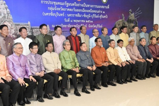 ที่มหาวิทยาลัยราชภัฏบุรีรัมย์ พล.ท.สรรเสริญ แก้วกำเนิด โฆษกประจำสำนักนายกรัฐมนตรี แถลงว่า พล.อ.ประยุทธ์ จันทร์โอชา นายกรัฐมนตรีและหัวหน้า คสช. ปรารภในตอนต้น ของการประชุมคณะกรรมการร่วมภาครัฐและเอกชนเพื่อแก้ไขปัญหาทางเศรษฐกิจ หรือ กรอ. กลุ่มจังหวัดภาคตะวันออกเฉียงเหนือตอนล่าง 1 ว่า ความตั้งใจในการลงพื้นที่จังหวัด สุรินทร์และบุรีรัมย์ ก็เพื่อรับทราบปัญหาจากต้นทางว่า นโยบายที่ส่งลงมาได้รับการปฏิบัติ มากน้อยแค่ไหน และประสบปัญหาอะไรบ้างหรือไม่ และนายกรัฐมนตรีระบุว่า การนำ เสนอข่าวการลงพื้นที่ถูกสื่อออกไป 2 ลักษณะ คือเข้าใจว่ารัฐบาลมีความตั้งใจเข้ามาแก้ไข ปัญหาในพื้นที่ อีกลักษณะคือพยายามนำเสนอเรื่องนัยทางการเมือง เช่น การดูด ส.ส. หรือทุ่มงบประมาณหลายหมื่นล้านเพื่อแลกกับผลทางการเมือง ซึ่งนายกรัฐมนตรี ให้สติกับที่ประชุมว่า พูดไปก็มีทั้งคนเชื่อและไม่เชื่อ เป็นไปไม่ได้ที่จะควบคุม ความคิดของคน จึงไม่จำเป็นต้องชี้แจง เพราะสิ่งที่จะพิสูจน์การทำงานของรัฐบาลได้ ก็ต่อเมื่อประชาชนได้เปรียบเทียบ ระหว่างเรื่องที่มีคนขอจากรัฐบาล กับเรื่องที่รัฐบาลให้ไป ซึ่งรัฐบาลไม่สามารถทำให้ได้ทุกเรื่อง เนื่องจากต้องพิจารณาถึงความสอดคล้องของแผนงาน และความพร้อมของพื้นที่