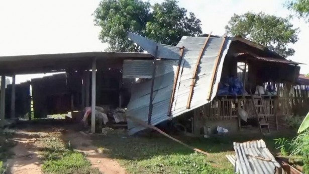 นายสมเดช ภิญญะชาติ ผู้ใหญ่บ้านดอนเชียงโท ต.สร้างถ่อ อ.เขื่องใน จ.อุบลราชธานี เปิดเผยว่า เช้านี้(12 พ.ค.) ได้ออกสำรวจความเสียหายจากพายุฤดูร้อน ที่พัดกระหน่ำเย็นวานนี้ สร้างความเสียหายให้แก่บ้านเรือนของชาวบ้าน 16 หลัง และยุ้งข้าวอีก 3 หลัง หลังสำรวจแล้วจะได้แจ้งให้ อบต.สร้างถ่อ ช่วยเหลือ นำวัสดุก่อสร้างมาซ่อมแซมบ้านเรือนให้ชาวบ้าน พายุฤดูร้อนพัดเข้าถล่ม ขณะชาวบ้านส่วนใหญ่กำลังจัดเตรียมงานประเพณีบุญบั้งไฟของหมู่บ้าน ที่วัด หลังฝนตกหนักประมาณ 30 นาที ชาวบ้านพากันกลับบ้าน จึงพบความเสียหาย เวลาไล่เลี่ยกัน ยังเกิดพายุฤดูร้อนพัดถล่ม หมู่บ้านน้ำยืน หมู่ 6 ต.โซง อ.น้ำยืน บ้านเรือนถูกพายุพัดเสียหายอีก 12 หลัง อำเภอออกสำรวจเพื่อให้การช่วยเหลือแล้ว พายุฤดูร้อนที่เกิดขึ้น ทำให้ฝนตกเป็นบริเวณกว้างตลอดทั้งเดือน ส่งผลให้ปริมาณน้ำในลำน้ำชีและลำน้ำเซบาย มีปริมาณน้ำเพิ่มขึ้น สำนักงานชลประทานที่ 7 จ.อุบลราชธานี สั่งการให้เขื่อนและอ่างเก็บน้ำตามลำน้ำทั้งสองสาย เริ่มระบายน้ำให้ไหลลงสู่แม่น้ำมูล เพื่อลดปริมาณการเก็บกักรองรับน้ำฝนใหม่ที่จะเริ่มขึ้นในเดือนมิถุนายนนี้ ( ภาพจากสำนักข่าวไทย)