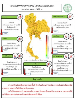 พยากรณ์อากาศ 24 ชั่วโมงข้างหน้า ประเทศไทยมีฝนฟ้าคะนองหลายพื้นที่ สำหรับบริเวณ ภาคเหนือ ภาคตะวันออกเฉียงเหนือ ภาคกลาง ภาคตะวันออก และภาคใต้ มีฝนตกหนัก บางแห่ง ขอให้ประชาชนบริเวณภาคเหนือ ภาคตะวันออกเฉียงเหนือ ภาคกลาง ภาคตะวันออก และภาคใต้ ระวังอันตรายจากฝนตกหนักและฝนที่ตกสะสมไว้ด้วย ลักษณะสำคัญทางอุตุนิยมวิทยา คลื่นกระแสลมตะวันตกจากประเทศเมียนมา เคลื่อนเข้า ปกคลุมภาคเหนือ และภาคตะวันออกเฉียงเหนือตอนบน ประกอบกับ มีลมตะวันออกเฉียงใต้ พัดนำความชื้นจากอ่าวไทยเข้ามาปกคลุมภาคตะวันออกเฉียงเหนือ ภาคตะวันออก ภาคกลาง และภาคใต้ ทำให้บริเวณดังกล่าวมีฝนฟ้าคะนองหลายพื้นที่และมีฝนตกหนักบางแห่งบริเวณ ภาคเหนือ ภาคตะวันออกเฉียงเหนือ ภาคกลาง ภาคตะวันออก และภาคใต้ พยากรณ์อากาศสำหรับประเทศไทยตั้งแต่เวลา 06:00 วันนี้ ถึง 06:00 วันพรุ่งนี้ -ภาคเหนือ ภาคตะวันออกเฉียงเหนือ ภาคกลาง ภาคตะวันออก ภาคใต้ฝั่งตะวันออก มีเมฆมาก กับมีฝนฟ้าคะนอง ร้อยละ 60 ของพื้นที่ โดยมีฝนตกหนักและลมกระโชกแรง บางแห่ง -ภาคใต้ (ฝั่งตะวันตก) มีเมฆเป็นส่วนมาก กับมีฝนฟ้าคะนอง ร้อยละ 40 ของพื้นที่ -กรุงเทพมหานครและปริมณฑล มีเมฆเป็นส่วนมาก กับมีฝนฟ้าคะนอง ร้อยละ 60 ของพื้นที่และมีฝนตกหนักบางแห่ง