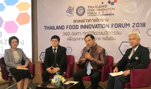 นายกลินท์ สารสิน ประธานกรรมการหอการค้าไทย เปิดเผยถึงการเตรียมจัดงาน “Thailand Food Innovation Forum 2018” ระหว่างวันที่ 21-22 พฤษภาคม ณ ศูนย์การประชุมแห่งชาติสิริกิติ์ ว่า ปีนี้จัดภายใต้แนวคิดทุกมิติของนวัตกรรมเพื่อ อุตสาหกรรมอาหารยั่งยืน โดยภายในงานจะมีการแสดงนวัตกรรมของอุตสาหกรรมอาหาร ที่ผู้ประกอบการไทยทั้งขนาดเล็ก กลาง และสตาร์ทอัพ นำความคิดสร้างสรรค์งานวิจัยมาแสดงเพื่อต่อยอดพัฒนาสินค้าและบริการ ในอนาคตมั่นใจจะเพิ่มยอดขายและการส่งออก โดยภาคอุตสาหกรรมอาหาร ตั้งเป้าหมายว่าปีนี้จะขยายตัวเพิ่มขึ้นร้อยละ 7 มูลค่าส่งออกไม่น้อยกว่า 1.07 ล้านล้านบาท
