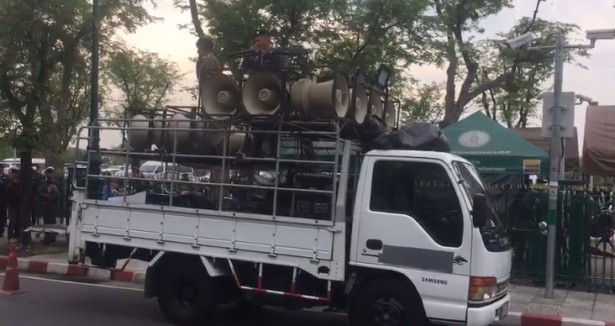 ที่บริเวณ ม.ธรรมศาสตร์ ท่าพระจันทร์ ระหว่างที่ผู้ชุมนุมกลุ่มคนอยากเลือกตั้ง กำลังตั้งขบวนเพื่อเดินทางออกไปไปยังทำเนียบรัฐบาล และแกนนำทยอยขึ้นรถปราศรัย ตำรวจนำรถเครื่องขยายเสียงจอดปราศรัย บริเวณหน้ามหาวิทยาลัย เพื่อแจ้งให้ผู้ชุมนุมยุติการชุมนุมทันที และห้ามเคลื่อนย้ายออกจากมหาวิทยาลัยโดยเด็ดขาด เนื่องจากกีดขวางการจราจร จะทำให้รถติด อีกทั้งการชุมนุมยังผิดคำสั่ง คสช.จึงขอให้ยุติการทำกิจกรรมโดยทันที ส่งผลให้ทั้งสองฝ่ายตอบโต้กันไป-มาทางรถขยายเสียง โดยผู้ชุมนุมยืนยันเป็นการชุมนุมโดยสันติ และไม่ได้กีดขวางการจราจร ทั้งสองฝ่ายเจรจากัน แต่ไม่ได้ข้อยุติ