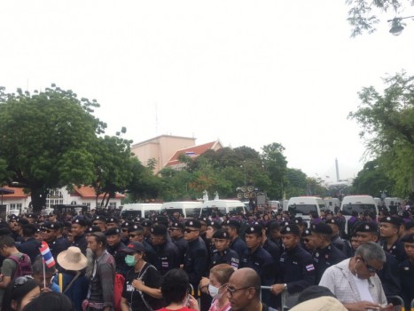 ที่บริเวณประตูทางเข้า-ออก มหาวิทยาลัยธรรมศาสตร์ ท่าพระจันทร์ กลุ่มผู้ชุมนุมคนอยากเลือกตั้ง ตั้งขบวนเพื่อเตรียมเคลื่อนไปยังทำเนียบรัฐบาล แต่ตำรวจที่ตรึงโดยรอบบริเวณไม่ยอมให้เคลื่อนขบวนออกไป พร้อมแจ้งให้ชุมนุมยุติการชุมนุมทันที นายรังสิมันต์ โรม แกนนำ ที่กล่าวอยู่บนรถขยายเสียง ลงมาขอเจรจากับตำรวจ เพื่อขอให้เปิดเส้นทาง ไปทำกิจกรรมอ่านแถลงการณ์ที่ทำเนียบรัฐบาล แต่เจ้าหน้าที่ยังไม่ยินยอม ผู้เข้าร่วมชุมนุมพากันตะโกนโห่ตำรวจต่อเนื่อง นายรังสิมันต์ พูดให้ผู้ชุมนุมนั่งลงกับพื้นถนนเพื่อรอการเจรจา นายรังสิมนต์ ระบุว่า ยังไม่แน่ใจว่าจะเดินทางไปทำเนียบฯได้กี่โมง เพราะถ้าตำรวจไม่เปิดทางให้ก็ไปไม่ได้ เนื่องจากประชาชนไม่ตั้งใจมาใช้กำลัง และถ้าไปไม่ได้จริง ๆ จะปักหลักที่ ม.ธรรมศาสตร์ จนกว่าจะผ่านไปได้ ถ้าไปไม่ถึงทำเนียบฯ ก็ขอขยับไปให้ถึงอนุสาวรีย์ประชาธิปไตย ให้ได้