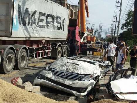 จากกรณีรถพ่วงพลิกคว่ำ แล้วตู้คอนเทนเนอร์ร่วงตกลงมาทับรถโตโยต้า ฟอร์จูนเนอร์ สีขาว จนบี้แบน เหตุเกิดบนถนนประชาพัฒนา โค้งวัดพลมานีย์ แขวงทับยาว เขตลาดกระบัง กรุงเทพมหานคร ทำให้นายวรวุฒิ อยู่ญาติมาก อายุ 42 ปี ได้รับบาดเจ็บ นายจงรักษ์ กิจสำราญกุล รองอธิบดีกรมการขนส่งทางบก กล่าวว่า กำลังตรวจสอบสาเหตุว่า ตู้คอนเทนเนอร์ มีอุปกรณ์ล็อกตู้คอนเทนเนอร์ ยึดติดกับตัวรถหรือไม่ เพราะผู้ประกอบการ ต้องตรวจเช็กให้ตัวรถ ต้องล็อคยึดติดกับตู้คอนเทนเนอร์ ก่อนเดินทางขนส่งอยู่แล้ว หากผล ตรวจสอบออกมาว่า ไม่ล็อคยึดติดกัน มีความผิดตาม พ.ร.บ.การขนส่งทางบก พ.ศ.2522 มีโทษปรับไม่เกิน 50,000 บาท พิจารณาพักใช้ใบอนุญาตประกอบการขนส่ง 15-30 วัน หากรถคันดังกล่าวเกิดเหตุซ้ำซาก 2-3 ครั้ง ก็พิจารณาเพิกถอนใบอนุญาตประกอบการขนส่ง ส่วนคนขับรถบรรทุกคันเกิดเหตุ มีความผิดเรื่องความปลอดภัย ไม่ใช้เครื่องอุปกรณ์และ ส่วนควบของรถตามที่กฎหมายกำหนด มีโทษปรับไม่เกิน 5,000 บาท พิจารณาพักใช้ ใบอนุญาตขับรถ 15-30 วัน หากเกิดเหตุซ้ำซาก 2-3 ครั้ง ก็อาจะถึงขั้นพิจารณาเพิกถอน ใบอนุญาตขับรถเช่นกัน อย่างไรก็ตาม กรมการขนส่งทางบก กำชับให้สำนักงานขนส่งจังหวัดทุกแห่ง เข้มงวด ตรวจสอบรถบรรทุกขนส่งสินค้าต้องล็อกตู้คอนเทนเนอร์ทุกครั้ง