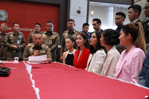 ที่สำนักงานตำรวจแห่งชาติ น.ส.พรพรรณ ชุนหชัย หรือ เจนนิเฟอร์ คิ้ม,น.ส.ศรัณย์รัชต์ ดีน หรือ ลิเดีย,น.ส.วิริฒิพา ภักดีประสงค์ หรือ วุ้นเส้น,น.ส.ไรบีนา ตันพิมล หรือนานา ไรบีนา น.ส.สุมณทิพย์ เหลืองอุทัย หรือ กุ๊บกิ๊บ ,น.ส.นาตาลี เดวิส ,น.ส.ราศรี จิราธิวัฒน์ หรือ มาร์กี้,นายภัสสรกรณ์ จิราธิวัฒน์ หรือ ป๊อก เข้าพบ พลตำรวจเอกวิระชัย ทรงเมตตา รองผู้บัญชาการตำรวจแห่งชาติ ตามหมายเรียกพนักงานสอบสวน เพื่อให้ปากคำ ในฐานะพยาน เนื่องจากเข้าไปมีส่วนเกี่ยวข้องกับการรีวิวผลิตภัณฑ์เสริมอาหาร ในเครือ “เมจิกสกิน” เจนนิเฟอร์ คิ้ม บอกว่า ใช้ผลิตภัณฑ์แกลโล 1 เดือน เริ่มใช้ในช่วงกลางปี 2560 น้ำหนักลดลง 2 กิโลกรัม ไม่มีผลข้างเคียง แต่มีการออกกำลังกายควบคู่ไปด้วย ก่อนรับรีวิว ได้ตรวจสอบ อย.ยืนยันว่า ไม่ได้มีส่วนร่วมกับเจ้าของ เป็นแค่คนมี ชื่อเสียงที่เป็นตัวแทนผู้บริโภคเท่านั้น คาดว่าเป็นผลิตภัณฑ์ล็อตแรกที่ทำให้ดารา นักแสดง จึงยังไม่มีผลข้างเคียง ส่วนมาร์กี้ และ ป๊อก บอกว่า หลักการรับงานคือ ต้องทดลองใช้ก่อนว่ามีผลข้างเคียงหรือไม่ ยืนยันว่าได้ทดลองใช้จริง และไม่ได้โฆษณาลงเพจ แต่หลังจากเกิดเหตุการณ์นี้ ได้ไลฟ์สด บอกให้ทุกคนระวัง ขณะที่ดารา นักแสดงรายอื่น ๆ บอกเป็นเสียงเดียวกันว่า หลังจากนี้ คงต้องดู ต้องตรวจสอบ ให้ละเอียดมากกว่านี้ ถือว่าเป็นความรู้ใหม่ ๆ ทำให้ดารานักแสดงมีความระมัดระวัง พลตำรวจเอกวิระชัย กล่าวว่า พนักงานสอบสวน ได้ออกหมายเรียกดารา นักแสดง 37 คน มาให้ปากคำแล้ว 23 คน ยังเหลืออีก 14 คน จะให้มาพบภายในสัปดาห์นี้ ขณะนี้ยังถือว่าดาราเป็นผู้บริสุทธิ์ ยังไม่มีการแจ้งข้อกล่าวหา ต้องรอผลการตรวจจาก กรมวิทยาศาสตร์การแพทย์ในผลิตภัณฑ์นั้น หลังจากนั้น พิจารณาว่าใครเข้าข่ายผิดบ้าง จะเร่งสรุปสำนวนส่งพนักงานอัยการในคดีฉ้อโกงภายในเดือนมิถุนายน ส่วนสำนวน การฟอกเงิน และการโฆษณาต้องสืบสวนต่อไป ดารานักแสดงจะบันทึกถ้อยคำอยู่ในทุกสำนวน