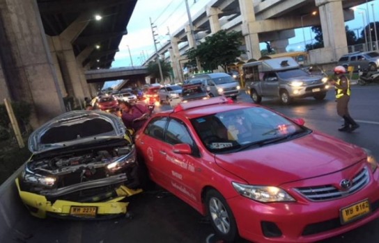 ที่เกิดเหตุ 2 จุด อยู่ระหว่างตอม่อ ที่ 98 - 99 ถนนวิภาวดี-รังสิต ขาออก ก่อนถึงตลาดใหม่ดอนเมือง แขวงและเขตดอนเมือง กทม. จุดแรก รถชนท้ายต่อกัน 5 คัน เป็นรถแท็กซี่ 2 คัน รถกระบะ 1 คัน และรถเก๋งอีก 2 คัน ทำให้มีผู้บาดเจ็บทันที 4 คน ประกอบด้วย นายจำนง ปราอาภรณ์ อายุ 53 ปี , นายจรูญ ขันสังข์ อายุ 60 ปี ทั้งคู่ขับแท็กซี่ , นายถวิล ศรีจันทร์ อายุ 50 ปี คนขับ และนางฉวี ศรีจันทร์ อายุ 51 ปี สามี-ภรรยาที่ขับและนั่งมาในรถกระบะ ทั้งหมดได้รับการนำส่ง ร.พ.ภูมิพลอดุลยเดช จุดที่สอง ซึ่งอยู่ไม่ห่างจากจุดแรกนัก มีรถพุ่งชนท้ายกันอีก 3 คัน แต่ไม่มีคนเจ็บสาหัส โดยหลังมีรถชนท้ายกัน 5 คัน ที่ช่องทางขวาสุด พลเมืองดีนำแท่งแบริเออร์พลาสติกไปวางขวางกั้นไว้ป้องกันอุบัติเหตุซ้ำซ้อน แต่หลังวางเสร็จ กลับเกิดอุบัติเหตุรถที่พยายามเบี่ยงเข้าช่องทางด้านซ้ายเพื่อหลบอุบัติเหตุจุดแรก แต่กลับชนท้ายกันอีก 3 คันดังกล่าว พ.ต.ท.ธีรยุทธ เสรีนนท์ชัย รอง ผกก.(สอบสวน) สน.วิภาวดี เปิดเผยว่า ต้องแบ่งออกเป็น 2 กรณี ต้องรอสอบปากคำผู้บาดเจ็บก่อนว่า สาเหตุมาจากความประมาทของใคร