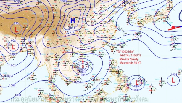 ประกาศกรมอุตุนิยมวิทยา "พายุดีเปรสชัน บริเวณทะเลจีนใต้ตอนกลาง" ฉบับที่ 7 เมื่อเวลา 01.00 น. พายุดีเปรสชันบริเวณทะเลจีนใต้ตอนกลาง มีศูนย์กลางอยู่ห่างไปทางตะวันออกเฉียงใต้ของเมืองดานัง ประเทศเวียดนาม ประมาณ 250 กิโลเมตร มีความเร็วลมสูงสุดใกล้ศูนย์กลางประมาณ 55 กม./ชม. พายุนี้กำลังเคลื่อนตัวทางทิศเหนืออย่างช้า ๆ คาดว่าจะมีกำลังแรงขึ้นเป็นพายุโซนร้อน และจะเคลื่อนตัวขึ้นสู่เกาะไหหลำ ประเทศจีน ช่วงวันที่ 5-7 มิถุนายน ขอให้ผู้ที่จะเดินทางไปบริเวณประเทศเวียดนาม และเกาะไหหลำ ประเทศจีน ควรตรวจสอบสภาพอากาศก่อนเดินทางด้วย ซึ่งพายุนี้ยังไม่มีผลกระทบโดยตรงต่อประเทศไทย และขอให้ประชาชนติดตามข่าวพยากรณ์อากาศอย่างใกล้ชิด