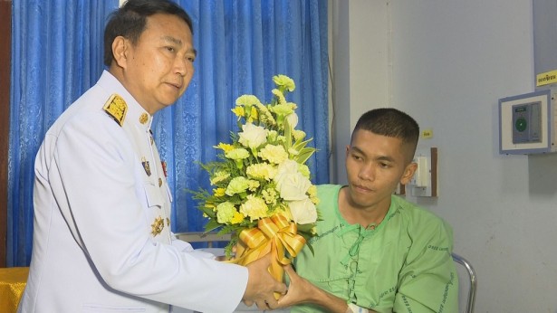 วันนี้ ( 5 มิ.ย.) เวลา 15.00 น. สมเด็จพระเจ้าอยู่หัว ทรงพระกรุณาโปรดเกล้า โปรดกระหม่อมให้ นายอนุชิต ตระกูลมุทุตา ผู้ว่าราชการจังหวัดยะลา เชิญดอกไม้ และตะกร้าสิ่งของพระราชทานไปมอบแก่ สิบโท ธรณินทร์ อินศวร และ อาสาสมัคร ทหารพราน วิทยา ศรีรักษา ที่ได้รับบาดเจ็บจากเหตุคนร้ายใช้อาวุธปืนเครื่องยิงลูกระเบิด ยิงใส่ฐานปฏิบัติการกองร้อยทหารพรานที่ 3311 หน่วยเฉพาะกิจกรมทหารพรานที่ 33 บริเวณบ้านบาเจาะ หมู่ที่ 2 ตำบลบาเจาะ อำเภอบันนังสตา จังหวัดยะลา เมื่อวานนี้ เข้ารับการรักษาพยาบาล ณ โรงพยาบาลศูนย์ยะลา อำเภอเมืองยะลา จังหวัดยะลา ยังความปลื้มปีติ และสำนึกในพระมหากรุณาธิคุณแก่ผู้บาดเจ็บ และครอบครัวอย่างหา ที่สุดมิได้