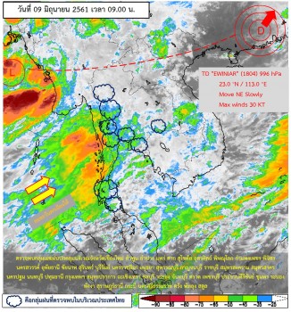 ประกาศกรมอุตุนิยมวิทยา "ฝนตกหนักถึงหนักมากบริเวณประเทศไทย และคลื่นลมแรง บริเวณภาคใต้ (มีผลกระทบจนถึงวันที่ 11 มิถุนายน 2561)" ฉบับที่ 6 วันที่ 9 มิถุนายน บริเวณภาคเหนือ ภาคตะวันออกเฉียงเหนือ ภาคกลาง ภาคตะวันออก และภาคใต้ตอนบน จะมีฝนฟ้าคะนองเพิ่มขึ้นและมีฝนตกหนักถึงหนักมากบางแห่ง ซึ่งอาจทำให้เกิดน้ำท่วมฉับพลัน น้ำป่าไหลหลากได้ จึงขอให้ประชาชนในพื้นที่เสี่ยงภัย ระวังอันตรายจากสภาวะฝนตกหนักและฝนที่ตกสะสมไว้ด้วย โดยจะมีผลกระทบ ตามภาคต่าง ๆ ดังนี้ วันที่ 9 มิถุนายน -ภาคเหนือ: แม่ฮ่องสอน เชียงใหม่ เชียงราย พะเยา น่าน แพร่ ลำพูน ลำปาง ตาก กำแพงเพชร สุโขทัย และพิจิตร -ภาคตะวันออกเฉียงเหนือ: หนองคาย บึงกาฬ สกลนคร นครพนม มุกดาหาร ยโสธร อำนาจเจริญ และอุบลราชธานี -ภาคกลาง: นครสวรรค์ อุทัยธานี ชัยนาท สุพรรณบุรี กาญจนบุรี และราชบุรี -ภาคตะวันออก: ชลบุรี ระยอง จันทบุรี และตราด - ภาคใต้: เพชรบุรี ประจวบคีรีขันธ์ ชุมพร สุราษฎร์ธานี ระนอง พังงา ภูเก็ต และกระบี่ ช่วงวันที่ 10-11 มิถุนายน -ภาคเหนือ: แม่ฮ่องสอน เชียงใหม่ เชียงราย ลำพูน ลำปาง พะเยา น่าน แพร่ อุตรดิตถ์ สุโขทัย ตาก กำแพงเพชร พิษณุโลก พิจิตร และเพชรบูรณ์ -ภาคตะวันออกเฉียงเหนือ: เลย หนองบัวลำภู อุดรธานี หนองคาย บึงกาฬ สกลนคร นครพนม มุกดาหาร ชัยภูมิ นครราชสีมา อำนาจเจริญ และอุบลราชธานี -ภาคกลาง: นครสวรรค์ อุทัยธานี ชัยนาท ลพบุรี สระบุรี สุพรรณบุรี กาญจนบุรี และราชบุรี -ภาคตะวันออก: นครนายก ฉะเชิงเทรา ปราจีนบุรี สระแก้ว ชลบุรี ระยอง จันทบุรี และตราด สำหรับคลื่นลมบริเวณทะเลอันดามันและอ่าวไทยตอนบนตั้งแต่จังหวัดสุราษฎร์ธานีขึ้นมา จะมีกำลังแรง โดยมีคลื่นสูง 2-3 เมตร ขอให้ชาวเรือเดินเรือด้วยความระมัดระวัง และเรือเล็ก บริเวณทะเลอันดามันและอ่าวไทยตอนบนควรงดออกจากฝั่ง และประชาชนที่อาศัยบริเวณ ชายฝั่งของภาคตะวันออกและภาคใต้ฝั่งตะวันตก ระวังอันตรายจากคลื่นลมแรงที่พัดเข้าหาฝั่งไว้ด้วย ทั้งนี้เนื่องจากมรสุมตะวันตกเฉียงใต้ที่พัดปกคลุมทะเลอันดามัน ประเทศไทย และ อ่าวไทยมีกำลังแรง ประกอบกับร่องมรสุมพาดผ่านประเทศเมียนมา ลาว และ เวียนดนามตอนบน ลักษณะเช่นนี้ทำให้ประเทศไทยมีฝนฟ้าคะนองเพิ่มขึ้น และ มีฝนตกหนักถึงหนักมากบางแห่ง สำหรับคลื่นลมบริเวณทะเลอันดามันและอ่าวไทย ตอนบน มีกำลังแรงขึ้น จึงขอให้ประชาชนติดตามประกาศจากกรมอุตุนิยมวิทยาอย่างใกล้ชิด และสามารถติดตาม ข้อมูลที่เว็บไซต์กรมอุตุนิยมวิทยา http://www.tmd.go.th หรือสายด่วนพยากรณ์อากาศ 1182 ได้ตลอด 24 ชั่วโมง