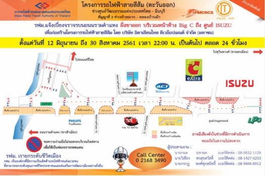 การรถไฟฟ้าขนส่งมวลชนแห่งประเทศไทย หรือ รฟม. แจ้งว่า บริษัท อิตาเลียนไทย ดีเวล๊อปเมนต์ จำกัด (มหาชน) ผู้รับจ้างก่อสร้างงานโยธาอุโมงค์ทางวิ่งและสถานี ใต้ดิน สัญญาที่ 3 ช่วงหัวหมาก คลองบ้านม้า มีความจำเป็นต้องเบี่ยงจราจร เพื่อ ก่อสร้างโครงการรถไฟฟ้าสายสีส้ม (ตะวันออก) ช่วงศูนย์วัฒนธรรมแห่งประเทศไทย – มีนบุรี บริเวณถนนรามคำแหง หน้าห้างบิ๊กซีถึง ศูนย์อีซูซุฝั่งขาออก ชิดทางเท้า 2 ช่อง จราจร เพื่อก่อสร้างกำแพงสถานีรถไฟฟ้าใต้ดินสถานีศรีบูรพา ตั้งแต่วันที่ 12 มิ.ย.ถึง 30 ส.ค. เวลา 22.00 น.เป็นต้นไป ตลอด 24 ชม. มีผลทำให้ช่องจราจรฝั่งขาออก และฝั่งขาเข้า เหลือ 2 ช่องทาง ทั้งนี้ การเบี่ยงจราจรเพื่อดำเนินการก่อสร้างอาจไม่ได้รับความสะดวกในการเดินทาง ดังนั้นหากไม่มีความจำเป็นโปรดหลีกเลี่ยงเส้นทาง