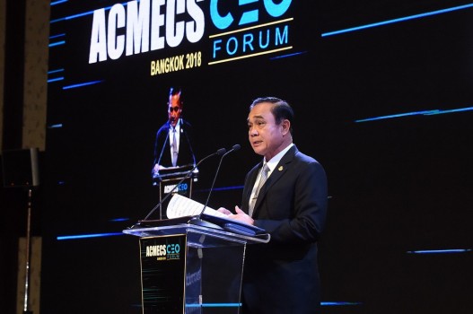 ประเทศไทยเป็นเจ้าภาพการประชุม ผู้นำประเทศสมาชิกยุทธศาสตร์ความร่วมมือทางเศรษฐกิจอิรวดี-เจ้าพระยา-แม่โขง หรือ แอคเมคส์ (Ayeyawady – Chao Phraya – Mekong Economic Cooperation Strategy : ACMECS) ครั้งที่ 8 ณ โรงแรมแชงกรี-ลา ระหว่างวันที่ 15-16 มิ.ย. โดยมีผู้นำประเทศสมาชิก ประกอบด้วย นายฮุน เซน นายกรัฐมนตรีกัมพูชา นายทองลุน สีสุลิด นายกรัฐมนตรีสาธารณรัฐประชาธิปไตยประชาชนลาว นายอูวิน มยิน ประธานาธิบดีแห่งสาธารณรัฐแห่งสหภาพเมียนมา และนายเหวียน ซวน ฟุก นายกรัฐมนตรีสาธารณรัฐสังคมนิยมเวียดนาม รวมถึง พล.อ.ประยุทธ์ จันทร์โอชา นายกรัฐมนตรี ในวันนี้ (15 มิ.ย.) เริ่มต้นด้วยการประชุม ACMECS CEO Forum หัวข้อ “เสริมสร้างความเชื่อมโยงทุกมิติเพื่ออนาคตร่วมกันของสมาชิกลุ่มน้ำโขง ซึ่งมีทั้งผู้นำชาติสมาชิกแอคเมคส์และผู้บริหารภาคเอกชน เข้าร่วม เพื่อแลกเปลี่ยนข้อมูลและข้อคิดเห็นระหว่างภาครัฐ ภาคเอกชน และสถาบันการเงิน จากทั้งชาติสมาชิกและหุ้นส่วนเพื่อการพัฒนา ในการยกระดับความร่วมมือด้านการเชื่อมโยง การค้าการลงทุนและการเงิน เมื่อเวลา 09.00 น. นายกรัฐมนตรี เป็นประธานกล่าวเปิดงานสรุปว่า ยินดีที่ภาคเอกชนของประเทศสมาชิก ACMECS และประเทศหุ้นส่วนการพัฒนา ให้ความสนใจเข้าร่วมจำนวนมาก การขับเคลื่อนการพัฒนาเศรษฐกิจของชาติสมาชิก โดยอาศัยความได้เปรียบจากความคล้ายคลึงกันทางวัฒนธรรม เพื่อลดช่องว่างในการพัฒนา มุ่งเน้นพัฒนาเศรษฐกิจตามแนวชายแดนที่มักถูกมองเป็นซอยตัน จึงต้องมุ่งเน้นความร่วมมือในการพัฒนาเศรษฐกิจตามแนวชายแดนและในระดับท้องถิ่น ที่มีบทบาทสำคัญในการส่งเสริมให้เกิดสันติภาพ เสถียรภาพ และความเจริญรุ่งเรืองแบบยั่งยืนร่วมกันของอนุภูมิภาค ขณะเดียวกัน ประเทศ ACMECS จึงจำเป็นต้องเร่งปรับตัว โดยเฉพาะในภาคการเกษตร ที่ต้องยกระดับสินค้าเกษตรด้วยการนำวิทยาศาสตร์และเทคโนโลยีมาประยุกต์ใช้ และหลีกเลี่ยงการแข่งขันระหว่างกันเอง การประชุมครั้งนี้ ทุกชาติสมาชิกจะเห็นพ้องในการจัดทำแผนแม่บท ACMECS เพื่อปรับโครงสร้างและจัดทำยุทธศาสตร์ความร่วมมือ มุ่งเน้นสร้างความเชื่อมโยงแบบไร้รอยต่อในอนุภูมิภาค พล.อ.ประยุทธ์ ยังกล่าวเชิญชวนภาคเอกชน เข้ามาร่วมกำหนดเป้าหมายเร่งด่วนด้านการพัฒนาทรัพยากรมนุษย์และนวัตกรรม ตลอดจนประเด็นที่ต้องการให้ภาครัฐช่วยอำนวยความสะดวก หรือปรับเปลี่ยนกฎระเบียบให้มีความยืดหยุ่นและสอดประสานกันมากขึ้น นอกจากนี้ในการจ้างแรงงาน ไทยมีนโยบายเปิดกว้าง โดยรัฐบาลได้จัดตั้งเขตพัฒนาเศรษฐกิจพิเศษ จำนวนทั้งสิ้น 10 แห่ง ตามบริเวณแนวชายแดน ซึ่งไทยมีมาตรการการอำนวยคว