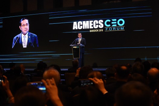 ระหว่างเป็นประธานเปิดการประชุม ผู้นำประเทศสมาชิกยุทธศาสตร์ความร่วมมือทางเศรษฐกิจอิรวดี-เจ้าพระยา-แม่โขง หรือ แอคเมคส์ (ACMECS) ครั้งที่ 8 ณ โรงแรม แชงกรี-ลา ซึ่งเริ่มต้นด้วยการประชุม ACMECS CEO Forum หัวข้อ “เสริมสร้างความ เชื่อมโยงทุกมิติเพื่ออนาคต ร่วมกันของสมาชิกลุ่มน้ำโขง ที่มีทั้งผู้นำชาติสมาชิกแอคเมคส์ และผู้บริหารภาคเอกชน เข้าร่วม เพื่อแลกเปลี่ยนข้อมูลและข้อคิดเห็นระหว่างภาครัฐ ภาคเอกชน และสถาบันการเงิน จากทั้ง ชาติสมาชิกและหุ้นส่วนเพื่อการพัฒนา ในการยกระดับความร่วมมือด้านการเชื่อมโยง การค้าการลงทุนและการเงิน พล.อ.ประยุทธ์ จันทร์โอชา นายกรัฐมนตรีและหัวหน้า คสช. กล่าวตอนหนึ่งถึงมาตรการการ อำนวยความสะดวกในการจ้างงานแรงงานต่างด้าว โดยยืนยันประเทศไทยมีนโยบาย ต้อนรับแรงงานต่างด้าวที่เดินทางมาทำงานอย่างถูกต้องตามกฎหมาย และพร้อมจะให้การ ดูแลแรงงานเหล่านี้ให้ได้รับสิทธิต่าง ๆ อย่างเป็นธรรม ที่ผ่านมา รัฐบาลไทยได้เร่งรัด การปฏิรูปการจัดทำทะเบียนประวัติ และการขออนุญาตทำงานของแรงงานต่างด้าว เพื่อสร้างระบบการจ้างงานที่เป็นธรรม และป้องกันปัญหาการค้ามนุษย์ จึงขอความร่วมมือ จากภาคเอกชนให้ช่วยกำกับดูแลการจ้างงานให้มีความเป็นธรรม หลีกเลี่ยงการจ้างงาน ที่มีลักษณะเป็นการเอารัดเอาเปรียบ ไม่เป็นไปตามกฎหมาย เพื่อให้แรงงานจากทุกชาติ ได้รับประโยชน์อย่างเท่าเทียมกัน พร้อมช่วยกันรักษาเสถียรภาพและความมั่นคงบริเวณ ชายแดน รวมถึงหาช่องทางปลดล็อคอุปสรรคต่าง ๆ ระหว่างกันอีกด้วย ด้านนายอู วิน มยิน ประธานาธิบดีแห่งสาธารณรัฐแห่งสหภาพเมียนมา กล่าวตอนหนึ่ง ขอแสดงความชื่นชมต่อข้อริเริ่มของไทย ในการให้ปรับปรุงความร่วมมือของกลุ่มแอคเมคส์ โดยการร่วมมืออย่างใกล้ชิดระหว่าง รัฐบาล ภาคเอกชน สถาบันการเงิน ประเทศสมาชิก ในกลุ่ม รวมถึงประเทศผู้ให้ความร่วมมือด้านการพัฒนา เชื่อว่าการประชุมแอคเมคส์ ซีอีโอ ฟอรั่มครั้งนี้ จะเป็นส่วนสำคัญของการนำแผนแม่บทแอคเมคส์มาใช้ และมีส่วน ส่งเสริมในการปฏิบัติให้ได้ผล