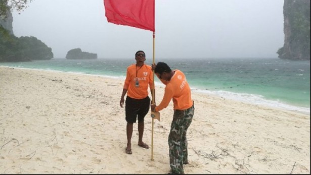 นายวรพจน์ ล้อมลิ้ม หัวหน้าอุทยานแห่งชาติ หาดนพรัตน์ธารา-หมู่เกาะพีพี จังหวัดกระบี่ เปิดเผยว่า ได้สั่งเจ้าหน้าที่อุทยานฯ ประจำเกาะปอดะ และตามแหล่งท่องเที่ยวทางทะเลในพื้นที่ ต.อ่าวนาง อ.เมืองกระบี่ ปักธงแดง เตือนนักท่องเที่ยวงดลงเล่นน้ำทะเลหาดเกาะปอดะ และหน้าหาดถ้ำพระนาง เพื่อความปลอดภัย เนื่องจากลมมรสุมตะวันตกเฉียงใต้พัดผ่านฝั่งทะเลอันดามัน ส่งผลให้คลื่นลมแรงพัดคลื่นสูงกว่า 2 เมตร