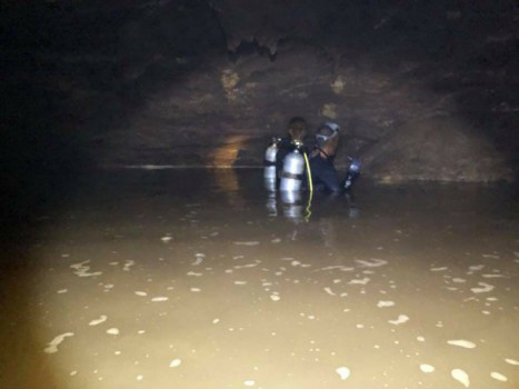 ความคืบหน้า ปฏิบัติการค้นหากลุ่มเด็กนักเรียนทีมฟุตบอลเยาวชน "หมูป่า" อายุระหว่าง 11-16 ปี พร้อมผู้ฝึกสอน รวม 13 คน จาก ต.โป่งผา อ.แม่สาย จ.เชียงราย ภายในถ้ำหลวงขุนน้ำนางนอน เมื่อช่วงบ่าย พล.ร.ต.อาภากร อยู่คงแก้ว ผู้บัญชาการหน่วยบัญชาการสงครามพิเศษทางเรือ กองเรือยุทธการ หรือหน่วยซีล เปิดเผยว่า หลังจากทีมหน่วยซีลดำน้ำลึก 5 เมตร ทะลุเข้าไปยังโถงใหญ่ของถ้ำ พบว่าผู้ที่ติดอยู่ภายในทิ้งร่องรอยเป็นสัญลักษณ์ระหว่างทางภายในถ้ำ แต่จนถึงขณะนี้ยังไม่เจอตัวเด็กและโค้ช ทั้งนี้ เจ้าหน้าที่หน่วยซีลที่ดำน้ำเข้าไปทะลุภายในโถงถ้ำขนาดใหญ่ กำลังสำรวจพื้นที่ เพื่อวางเชือก และแท่นเรืองแสงทีละจุด ตามรอยสัญลักษณ์ที่เด็กทิ้งไว้ หลังเดินจากจุดที่ดำน้ำผ่านเข้าไปยังห้องโถงใหญ่ ประมาณ 1 กิโลเมตร จากระยะรวมประมาณ 7 กิโลเมตร ขณะที่ญาติของเด็กบางคน นิมนต์พระสงฆ์ทำพิธีขอขมาสิ่งศักดิ์สิทธิ์ และสิ่งลี้ลับ เพื่อให้เจ้าหน้าที่พบบุตรหลานโดยเร็วและปลอดภัย