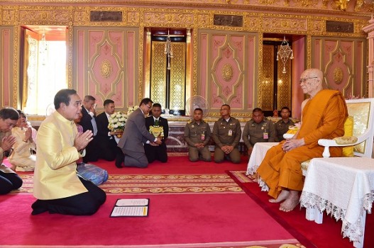 พล.อ.ประยุทธ์ จันทร์โอชา นายกรัฐมนตรีและหัวหน้าคณะรักษาความสงบแห่งชาติ พร้อมด้วยนางนราพร จันทร์โอชา ภริยา และคณะรัฐมนตรี เข้าเฝ้าถวายเครื่องสักการะ สมเด็จพระอริยวงศาคตญาณ สมเด็จพระสังฆราช สกลมหาสังฆปริณายก เนื่องในโอกาสวันคล้ายวันประสูติ 26 มิถุนายน 2561 ทรงเจริญพรรษายุกาลครบ 91 พรรษา นายกรัฐมนตรี กราบนมัสการสมเด็จพระสังฆราช และกล่าวคำถวายเครื่องสักการะ เปิดกรวยกระทงดอกไม้ พานธูปเทียนแพ ถวายพานดอกบัว ผ้าไตรและเครื่องไทยธรรม สมเด็จพระสังฆราช ทรงสนทนาธรรมกับนายกรัฐมนตรี ว่า วันเกิดเป็นแค่วันหนึ่ง อย่าให้ความสำคัญมาก เพราะเหมือนทุก ๆ วัน จึงขอให้ทำทุก ๆ วันอย่างดีที่สุด และขออวยพรให้นายกรัฐมนตรีและคณะมีสุขภาพแข็งแรง ด้านนายกรัฐมนตรี กล่าวว่า ศาสนาสอนให้ทุกคนมีสติ มีความงาม การไปต่างประเทศเพื่อไปเยี่ยมชมเทคโนโลยีสมัยใหม่ และนำกลับมาปรับใช้ในประเทศ รัฐบาลขอทำหน้าที่ให้ดีในการรักษาบ้านเมือง และจะทำคุณประโยชน์ให้ประเทศชาติ อย่างไรก็ตาม ขณะนี้ไม่สบายใจ ต่อการหายตัวของนักฟุตบอลเยาวชนและผู้ช่วยผู้ฝึกสอน ทีมหมูป่าอะคาเดมีแม่สาย โดยมอบหมายให้ พล.อ.อนุพงษ์ เผ่าจินดา รัฐมนตรีว่าการกระทรวงมหาดไทย ไปดูแลติดตามและทุกหน่วยงานช่วยกันหา ซึ่งน่าจะสำเร็จได้ด้วยดี จากนั้น นายกรัฐมนตรีและคณะ เดินทักทายประชาชนภายในบริเวณวัด พร้อมเล่าเรื่องที่เดินทางไปอังกฤษและฝรั่งเศส ว่าได้ไปทำอะไรบ้าง ยืนยันไม่ได้ไปขายของหรือซื้อของ ตามที่มีเสียงวิพากษ์วิจารณ์ ศาสนาพุทธสอนให้เรามีเมตตาธรรมอย่างมีสติ และจะทำให้เกิดปัญญา แต่ยอมรับว่าบางครั้งก็มีอารมณ์โมโหมากไปบ้าง