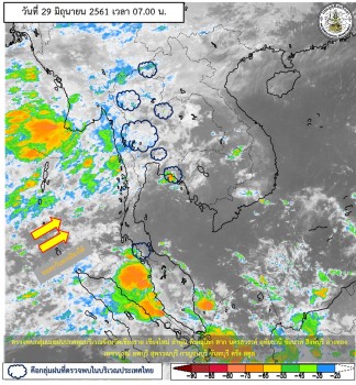 พยากรณ์อากาศ 24 ชั่วโมงข้างหน้า ประเทศไทยฝนลดลง แต่ยังคงมีฝนตกหนักบางแห่งทางด้านตะวันตกของภาคเหนือ ภาคกลาง และภาคตะวันออก ขอให้ประชาชนบริเวณดังกล่าว ระวังอันตรายจากฝนตกหนักและฝนที่ตกสะสมไว้ด้วย - ภาคเหนือ มีเมฆเป็นส่วนมาก กับมีฝนฟ้าคะนอง ร้อยละ 60 ของพื้นที่ และมีฝนตกหนักบางแห่ง โดยไม่มีคำเตือนถึง จ.เชียงราย - ภาคอื่น ๆ กรุงเทพมหานครและปริมณฑล มีเมฆเป็นส่วนมาก กับมีฝนฟ้าคะนอง ร้อยละ 40 ของพื้นที่