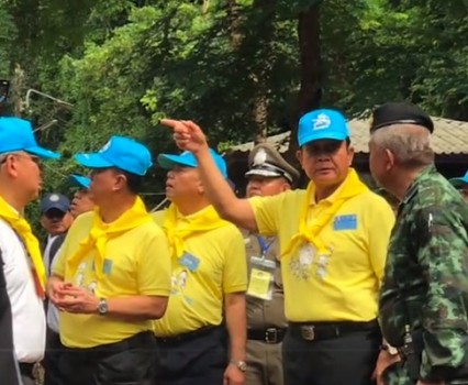 หลังนายกรัฐมนตรีลงพื้นที่ถ้ำหลวง-ขุนน้ำนางนอน จังหวัดเชียงราย เพื่อติดตามปฏิบัติการค้นหานักฟุตบอลเยาวชนและผู้ช่วยผู้ฝึกสอน ทีมหมูป่าอะคาเดมีแม่สาย 13 คน ที่ติดในถ้ำหลวง-ขุนน้ำนางนอน นายกฯ กล่าวว่า สมเด็จพระเจ้าอยู่หัวฯ ทรงห่วงใย และทรงติดตามตลอดเวลา ให้ทุกคนมีกำลังใจที่เข้มแข็ง หลังจากนั้นนายกฯ ร่วมพูดคุยกับจิตอาสา และทักทายโรงครัวพระราชทาน ให้กำลังใจ และวันนี้ขอเทพ เทวดา อย่าให้ฝนตก ขอให้ฟ้าเปิด เพื่อให้ปฎิบัติการเป็นไปอย่างราบรื่น