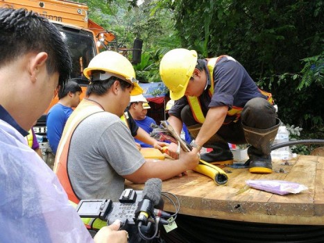 นายบรรพต ธีระวาส ผู้ช่วยผู้ว่าการเหมืองแม่เมาะ การไฟฟ้าฝ่ายผลิตแห่งประเทศไทย หรือ กฟผ.เปิดเผยว่า ขณะนี้ทีมผู้เชี่ยวชาญด้านบำรุงรักษาไฟฟ้าของเหมืองแม่เมาะ เร่งนำสาย Power Main ขนาด 4×50 ตารางมิลลิเมตร ความยาว 1,250 เมตร เชื่อมต่อ เข้ากับเครื่องจ่ายกระแสไฟฟ้าของการไฟฟ้าส่วนภูมิภาค เพื่อเพิ่มประสิทธิภาพ การจ่ายกระแสไฟฟ้า สนับสนุนปฏิบัติการสูบน้ำออกจากถ้ำหลวง-ขุนน้ำนางนอน อำนวยความสะดวกให้กับหน่วยปฏิบัติการค้นหาผู้สูญหายทั้ง 13 คน คาดว่า หากสามารถเชื่อมต่อสาย Power Main แล้วเสร็จ กระแสไฟฟ้าจะเพิ่มขึ้นจาก 90 แอมป์ เป็น 150 แอมป์ ช่วยให้เครื่องสูบน้ำจำนวน 26 เครื่อง ซึ่งติดตั้งอยู่ภายในถ้ำทำงาน ได้อย่างเต็มประสิทธิภาพมากขึ้น สำหรับสาย Power Main ที่นำมาจาก กฟผ. แม่เมาะ เป็นสายไฟที่ใช้สำหรับงานปั๊ม ภายในบ่อเหมืองแม่เมาะ ซึ่งเป็นสายไฟที่มีคุณสมบัติเฉพาะ ทนต่อกระแสไฟฟ้าและแรงดันไฟฟ้าได้สูงถึง 8,000 กิโลโวลต์ มีความทนทาน สามารถกันน้ำได้ดีจึงปลอดภัย ต่อผู้ปฏิบัติงานในพื้นที่