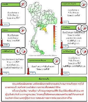 พยากรณ์อากาศ 24 ชั่วโมงข้างหน้า ประเทศไทยมีปริมาณฝนลดลง แต่ยังคงมีฝนตกหนักบางแห่งบริเวณภาคตะวันออก โดยมีฝนฟ้าคะนอง ร้อยละ 30 ของพื้นที่ ขอให้ประชาชนบริเวณดังกล่าวระวังอันตรายจากฝนที่ตกสะสมไว้ด้วย ส่วนภาคเหนือ ภาคตะวันออกเฉียงเหนือ ภาคกลาง มีเมฆเป็นส่วนมาก กับมีฝนฟ้าคะนอง ร้อยละ 40 ของพื้นที่ ภาคใต้ (ฝั่งตะวันออก) กรุงเทพมหานครและปริมณฑล มีฝนฟ้าคะนอง ร้อยละ 30 ของพื้นที่ และภาคใต้ (ฝั่งตะวันตก) มีฝนฟ้าคะนอง ร้อยละ 20 ของพื้นที่ สำหรับพายุโซนร้อน “พระพิรุณ” บริเวณมหาสมุทรแปซิฟิก มีแนวโน้มเคลื่อนเข้าประเทศญี่ปุ่นในช่วงวันที่ 2-3 กรกฎาคม พายุนี้ไม่มีผลกระทบต่อประเทศไทย แต่ขอให้ประชาชนที่จะเดินทางไปประเทศญี่ปุ่น ควรตรวจสอบสภาพอากาศก่อนออกเดินทางด้วย ส่วนที่ จ.เชียงราย เช้านี้ อากาศปลอดโปร่ง มีแสงแดด ท้องฟ้ามีเมฆน้อย ซึ่งเป็นสัญญาณดีที่จะไม่มีน้ำฝนลงมาเติมปริมาณน้ำ ขณะที่ปฏิบัติการค้นหาและช่วยเหลือทั้ง 13 ชีวิต ทีมหมูป่าอะคาเดมีแม่สาย ยังคงเป็นไปด้วยความขะมักเขม้น ของทุกฝ่าย