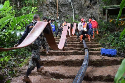 นายทองเปลว กองจันทร์ อธิบดีกรมชลประทาน กล่าวว่า ขณะนี้กรมชลประทานยังคง บูรณาการการทำงานร่วมกับหน่วยงานที่เกี่ยวข้อง เร่งสูบน้ำออกจากถ้ำหลวง-ขุนน้ำนางนอน จ.เชียงราย เพื่อให้เจ้าหน้าที่กู้ภัย หน่วยซีล พร้อมหน่วยแพทย์ สามารถนำอาหารและยารักษาโรค พร้อมนำทั้ง 13 ชีวิตทีมหมูป่าอะคาเดมี่แม่สาย ออกมาจากถ้ำหลวงได้อย่างสะดวกรวดเร็ว จากการตรวจสอบไปยังพื้นที่ พบว่าระดับน้ำในถ้ำหลวงลดลงอย่างต่อเนื่อง ในส่วนของ กรมชลประทานยังคงพยายามสำรวจเส้นทางน้ำที่คาดว่าจะไหลลงสู่ถ้ำหลวง เพื่อจะได้สกัดกั้นไม่ให้น้ำไหลลงไปเพิ่มเติม รวมถึงทางเบี่ยงน้ำ (Bypass) ที่ทำไว้ ยังคงทำงานได้อย่างเต็มที่ อธิบดีกรมชลประทาน กล่าวต่อว่า สำหรับพื้นที่การเกษตรที่มีน้ำท่วมขังที่นา ในพื้นที่ บ้านสันปู่เลย จำนวน 458 ไร่ และบ้านหนองอ้อ จำนวน 300 ไร่นั้น กรมชลประทานได้ร่วมกันวางแผนเร่งระบายน้ำออกจากพื้นที่การเกษตร โดยวันนี้ ได้ติดตั้งเครื่องสูบน้ำขนาด 12 นิ้ว 1 เครื่อง เพื่อสูบระบายน้ำจากพื้นที่น้ำท่วมขัง ให้ระบายลงสู่ลำน้ำจ้อง ลำน้ำมะ ลำน้ำลวก ก่อนไหลลงสู่แม่น้ำโขงที่ อ.เชียงแสน จ.เชียงราย ตามลำดับ ซึ่งกระทรวงเกษตรและสหกรณ์ จะให้การช่วยเหลือและชดเชยเยียวยาเกษตรกรที่เสียสละเหล่านี้ตามระเบียบต่อไป ในส่วนของการสำรวจด้านธรณีวิทยา ทีมเทคนิควิศวกรรมธรณี วิศวกรรมปฐพีกลศาสตร์ ทีมธรณีฟิสิกส์ ของกรมชลประทาน และกรมทรัพยากรธรณี ยังคงเข้าพื้นบ้านผาหมี เพื่อ ดูแลงานป้องกันน้ำที่อาจจะไหลเข้าสู่ถ้ำหลวงได้อีก พร้อมกันนี้ ยังมีทีมสนับสนุน ชุดปฏิบัติการอื่นๆ ยังคงเตรียมพร้อมอยู่ในพื้นที่อย่างต่อเนื่องจนกว่าจะเสร็จสิ้นภารกิจ