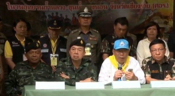 วันนี้ เวลา 09.50 น. นายณรงค์ศักดิ์ โอสถธนากร ผู้ว่าราชการ จ.พะเยา ในฐานะผู้บัญชาการ ศูนย์อำนวยการร่วมค้นหาผู้สูญหายในวนอุทยานถ้ำหลวง - ขุนน้ำนางนอน จ.เชียงราย หรือ ศอร. แถลงความคืบหน้าการช่วยเหลือนักเตะเยาวชนและโค้ชทีมหมูป่าอะคาเดมี่แม่สาย รวม 13 คน ที่ติดอยู่ภายในถ้ำ ว่า เช้านี้ พบว่ามีอาสาฯ ที่ไม่ได้ลงทะเบียน ไปขุดน้ำโดยพลการ ทำให้น้ำไหลเข้าไปในถ้ำ สำหรับอะไรที่อยู่นอกแผน อยากให้มาคุยกันก่อน เพราะวันนี้ เป็นวันที่ 14 ของการทำงานแล้ว ทุกคนก็ล้า ขณะที่จากปากถ้ำไปถึงจุดที่น้องๆ อยู่ ไป-กลับใช้เวลา 11 ชั่วโมง ดังนั้น การรายงานข่าวสารต่างๆ จึงล่าช้า ส่วนการติดอุปกรณ์ สื่อสารให้น้องๆ คุยพ่อแม่นั้น ตอนนี้อุปกรณ์เข้าไปแล้ว วันนี้ จะดำเนินการต่อ จะเร่งทำงาน ผู้บัญชาการ ศอร. กล่าวด้วยว่า ตอนนี้กำลังคำนวณตำแหน่งพิกัดบนดิน ให้ตรงกับ เนินนมสาวในถ้ำที่น้องๆ อยู่ ซึ่งเจ้าหน้าที่กำลังสำรวจ หาช่องทางอยู่ และเช้าวันนี้ ได้เตรียม อุปกรณ์ 13 ชุด ถ้าน้องๆ ต้องออกมาในสภาพความพร้อมไม่ 100 เปอร์เซ็นต์ ให้ประเมินว่า ณ ที่เปอร์เซ็นต์เท่าไรที่เรารับได้ ถ้าถึงจุดนั้น ก็ให้พาน้องออกมา เพราะสิ่งที่เร่งเร้า คือ น้ำที่เติมเข้ามา ส่วนการสอนน้องๆ ดำน้ำ ขณะนี้น้องเพิ่งฝึกได้เพียงวันเดียว คงไม่ง่าย และตนเองตอบไม่ได้ ต้องให้ครูฝึกประเมิน ส่วนสภาพร่างกายน้องๆ ยังแข็งแรง จิตใจยังดีอยู่ ยังยิ้มแย้มแจ่มใส เล่นกันได้
