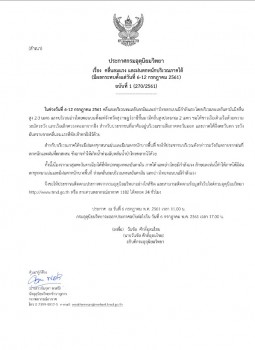 ประกาศกรมอุตุนิยมวิทยา "คลื่นลมแรง และฝนตกหนักบริเวณภาคใต้ (มีผลกระทบ ตั้งแต่วันที่ 6-12 กรกฎาคม 2561)" ฉบับที่ 1 ช่วงวันที่ 6-12 กรกฎาคม คลื่นลมบริเวณทะเลอันดามันและอ่าวไทยตอนบนมีกำลังแรง โดยบริเวณทะเลอันดามันมีคลื่นสูง 2-3 เมตร และบริเวณอ่าวไทยตอนบนตั้งแต่จังหวัด สุราษฎร์ธานี ขึ้นมามีคลื่นสูงประมาณ 2 เมตร ขอให้ชาวเรือเดินเรือด้วยความระมัดระวัง และเรือเล็กควรงดออกจากฝั่ง สำหรับประชาชนที่อาศัยอยู่บริเวณชายฝั่งภาคตะวันออก และภาคใต้ฝั่งตะวันตก ระวังอันตรายจากคลื่นลมแรงที่พัดเข้าหาฝั่งไว้ด้วย สำหรับบริเวณภาคใต้ จะมีฝนตกชุกหนาแน่นและมีฝนตกหนักบางพื้นที่ ขอให้ประชาชน บริเวณดังกล่าวระวังอันตรายจากฝนที่ตกหนักและฝนที่ตกสะสม ซึ่งอาจทำให้เกิด น้ำท่วมฉับพลันน้ำป่าไหลหลากไว้ด้วย ทั้งนี้เนื่องจากมรสุมตะวันตกเฉียงใต้ที่พัดปกคลุม ทะเลอันดามัน ภาคใต้ และอ่าวไทยมีกำลังแรง ลักษณะเช่นนี้ทำให้ภาคใต้มีฝนตกชุก หนาแน่นและมีฝนตกหนักบางพื้นที่ ส่วนคลื่นลมบริเวณทะเลอันดามัน และอ่าวไทย ตอนบนมีกำลังแรง จึงขอให้ประชาชนติดตามประกาศจากกรมอุตุนิยมวิทยาอย่างใกล้ชิด และสามารถ ติดตามข้อมูลที่เว็บไซต์กรมอุตุนิยมวิทยา http://www.tmd.go.th หรือ สายด่วน พยากรณ์อากาศ 1182 ได้ตลอด 24 ชั่วโมง
