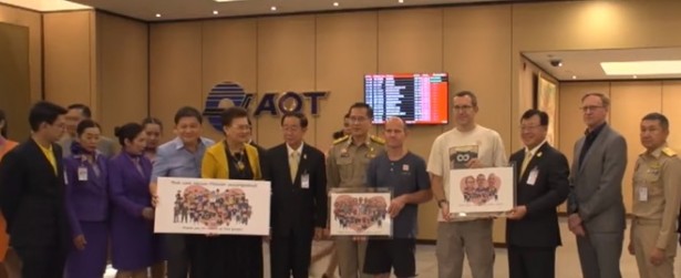 นายจอห์น โวลันเธน และนายเจสัน มัลลินสัน 2 ผู้เชี่ยวชาญการดำน้ำในถ้ำจากอังกฤษ เดินทางออกจากท่าอากาศยานสุวรรณภูมิ เพื่อกลับประเทศอังกฤษ เมื่อคืน ด้วย สายการบินไทย เที่ยวบินที่ TG 910 เวลา 00.55 น. หลังเสร็จสิ้นภารกิจช่วยเหลือทีม หมูป่าอะคาเดมี่แม่สาย รวม 13 คน ที่ติดอยู่ภายในถ้ำหลวง-ขุนน้ำนางนอน จ.เชียงราย มีนายวีระศักดิ์ โควสุรัตน์ รัฐมนตรีว่าการกระทรวงการท่องเที่ยวและกีฬา และ นายอาคม เติมพิทยาไพสิฐ รัฐมนตรีว่าการกระทรวงคมนาคม เดินทางไปส่ง พร้อมมอบของที่ระลึก ทั้งเหรียญตราสำนักนายกรัฐมนตรี หีบไม้ที่ระลึก รวมถึงเสื้อเชิ้ตที่จัดทำขึ้น เพื่อขอบคุณ ในความเสียสละมาร่วมภารกิจกับไทยอย่างไม่ลังเลใจในทันทีเมื่อร้องขอ ทั้งนี้ พลเอก ประยุทธ์ จันทร์โอชา นายกรัฐมนตรี ได้ฝากคำขอบคุณมาด้วย นายจอห์น โวลันเธน บอกว่า ได้เห็นความร่วมมือของคนไทยที่ยอดเยี่ยมมาก รวมถึง การทำงานร่วมกับหน่วยซีลของไทยและนานาชาติ ส่วนตัวรู้สึกโล่งใจที่สามารถทำภารกิจ ประสบความสำเร็จ ยืนยันจะกลับมาประเทศไทยอีก แต่จะมาในฤดูกาลที่เหมาะสม กับการดำน้ำ เพื่อร่วมทำแผนที่สำรวจถ้ำหลวงอีกครั้ง และฝากบอกไปถึงเด็กๆ ว่า อย่าเข้าไปในถ้ำเวลาที่ฝนตกอีก ด้านนายเจสัน มัลลินสัน บอกว่า รู้สึกปลื้มใจที่ทุกคนปลอดภัยและยังมีชีวิตอยู่ หลังจากนี้ ขอให้ระมัดระวังให้มากขึ้น