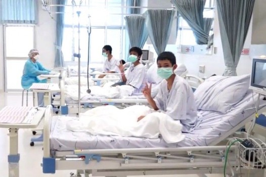 นพ.ธงชัย เลิศวิไลรัตนพงศ์ ผู้ตรวจราชการกระทรวงสาธารณสุข เขตสุขภาพที่ 1 เปิดเผยว่า ได้รับรายงานจาก นพ.ไชยเวช ธนไพศาล ผู้อำนวยการโรงพยาบาลเชียงรายประชานุเคราะห์ ว่า ทีมแพทย์ พยาบาล และสหวิชาชีพ ยังคงให้การรักษาและควบคุมป้องกันโรคแก่ทีม หมูป่าอะคาเดมี่แม่สายทั้ง 13 คน ในหอผู้ป่วยชั้น 8 อย่างใกล้ชิด ล่าสุดเช้านี้ ทุกคนอาการ ดีขึ้นตามลำดับ ญาติสามารถเยี่ยมใกล้ชิด โดยสวมหน้ากากอนามัย ล้างมือก่อนและหลัง เข้าเยี่ยม โดยกลุ่มแรก จำนวน 4 คน เข้ารับการรักษาที่โรงพยาบาล ตั้งแต่วันที่ 8 ก.ค. อาการทั่วไป ปกติ ไม่มีไข้ รับประทานอาหารปกติได้ ขับถ่ายปกติ ตรวจตาโดยจักษุแพทย์ ผลปกติ สำหรับ 2 รายที่มีปัญหาปอดติดเชื้อ อาการดีขึ้น ผลเอ็กซเรย์ปอด ปกติ ผลการเพาะเชื้อ ในกระแสเลือดให้ผลลบ รอให้ยาปฏิชีวนะครบ 7 วัน กลุ่มที่ 2 จำนวน 4 คน เข้ารับการรักษาในโรงพยาบาลตั้งแต่วันที่ 9 ก.ค. อาการทั่วไปดี สัญญาณชีพปกติ ไม่มีไข้ รับประทานอาหารได้ดี ตรวจหูโดยแพทย์หูคอจมูก ผลปกติ รอให้ยาปฏิชีวนะครบ 7 วัน กลุ่มที่ 3 จำนวน 5 คน เข้ารีบการรักษาตั้งแต่วันที่ 10 ก.ค. อาการทั่วไปปกติ มีไข้ต่ำ ๆ สัญญาณชีพอื่น ๆ ปกติ รับประทานอาหารได้ดี รายที่มีอาการปอดติดเชื้อเล็กน้อย อาการดีขึ้น ส่วน 3 รายยังให้ยารักษาภาวะติดเชื้อ ที่บริเวณหูชั้นกลางต่อ และรอให้ยา ปฏิชีวนะครบ 7 วัน นพ.ธงชัย กล่าวต่อว่า สำหรับการดูแลด้านจิตใจ ทุกคนมีสุขภาพจิตที่ดี ไม่มีอาการเครียด หรือกังวลกับเหตุการณ์ที่ผ่านมา ซึ่งทีมจิตแพทย์ นักจิตวิทยาของโรงพยาบาลเชียงราย ประชานุเคราะห์ ได้ให้การดูแลทั้งผู้ป่วยและญาติมาตั้งแต่ต้น ประเมินติดตามอาการ อย่างใกล้ชิดในโรงพยาบาลทุกวัน และเตรียมแผนการดูแลต่อเนื่องเมื่อกลับบ้าน