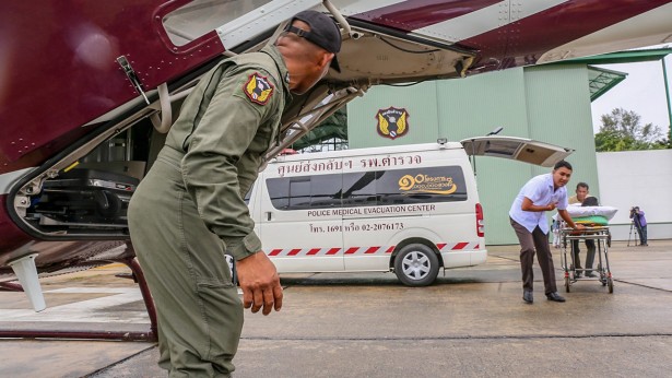 วันนี้ ที่กองบินตำรวจท่าแร้ง ถนนรามอินทรา กรุงเทพมหานคร โรงพยาบาลตำรวจ ได้จำลองเหตุการณ์เพื่อถอดบทเรียน การขนย้ายผู้ป่วยจากปฏิบัติการลำเลียงตัวนักฟุตบอลและโค้ชทีมหมูป่าอะคาเดมีแม่สาย ออกจากพื้นที่ถ้ำหลวง เทือกเขาขุนน้ำนางนอน อำเภอแม่สาย จังหวัดเชียงราย ส่งต่อให้โรงพยาบาลเชียงรายประชานุเคราะห์ โดยมีการใช้รถพยาบาลและเฮลิคอปเตอร์ เหมือนเหตุการณ์จริง พลตำรวจตรี นายแพทย์ ไพบูลย์ มะระพฤกษ์วรรณ ศัลยแพทย์โรงพยาบาลตำรวจ ที่ร่วมปฏิบัติหน้าที่กับหน่วยแพทย์สนาม เปิดเผยว่า การขนย้ายประสบความสำเร็จ เพราะหน่วยแพทย์และนักบินมีความชำนาญในเครื่องมืออุปกรณ์ จากการฝึกซ้อมทุกอย่าง จึงเป็นไปตามแผนที่วางไว้ ขณะที่การคัดกรองผู้ช่วย ที่บริเวณโรงพยาบาลสนาม ได้ประชุมกับทุกหน่วยงานเพื่อประเมินสุขภาพก่อนการขนย้าย ทำให้หน่วยแพทย์ทราบสถานการณ์ทุกอย่าง ซึ่งจากการประเมินทุกฝ่ายเห็นว่า โรงพยาบาลเชียงรายประชานุเคราะห์ มีความพร้อมสูงสุด แต่ต้องเดินทางขนย้ายระยะทางไกลจากถ้ำหลวง ประกอบกับช่วงเวลานั้นอากาศเปิด ไม่มีพายุฝน ทีมแพทย์จึงเลือกใช้เฮลิคอปเตอร์ในการขนย้ายผู้ประสบภัย ซึ่งระหว่างการขนย้าย เด็กมีอุณหภูมิร่างกายต่ำ จากความเย็นในถ้ำ และภาวะน้ำตาลในเลือดต่ำ จากการได้รับอาหารจำกัด จึงจำเป็นต้องให้ออกซิเจนบนเครื่อง และผ้าห่มเคมีเพื่อให้ความอบอุ่น ด้านพันตำรวจเอก นายแพทย์สามารถ ม่วงศิริ หัวหน้าศูนย์ส่งกลับโรงพยาบาลตำรวจ ระบุว่า เฮลิคอปเตอร์ ของศูนย์ส่งกลับโรงพยาบาลตำรวจ ได้ติดตั้งอุปกรณ์ทางการแพทย์ที่ทันสมัย ทั้งเครื่องตรวจวัดและให้ออกซิเจน เครื่องตรวจวัดความดัน เครื่องปั๊มหัวใจ และเครื่องให้น้ำเกลือ ซึ่งสามารถรองรับภารกิจขนย้ายทางการแพทย์ทุกสถานการณ์บนอากาศ ส่วนในเหตุการณ์ขนย้ายทีมหมูป่าอะคาเดมี่นั้น การให้ออกซิเจนเพื่อประคองอาการผู้ประสบภัยให้คงที่เป็นสิ่งสำคัญที่สุด เพราะบนอากาศจะเกิดความผันผวนมากกว่าบนพื้นราบปกติ