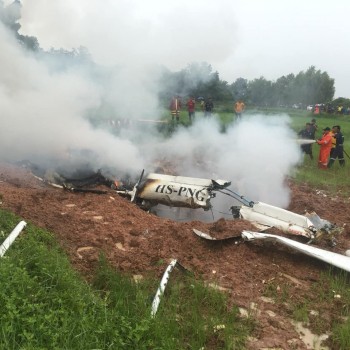 เจ้าหน้าที่ตำรวจสถานีตำรวจภูธรชนบท จ.ขอนแก่น พร้อมเจ้าหน้าที่กู้ภัย เข้าตรวจสอบเหตุเครื่องบินเล็ก แบบ 4 ที่นั่งของ บริษัท SFS ตกในทุ่งนาของ ชาวบ้าน ต.วังแสง อ.ชนบท และเกิดเพลิงไหม้ เบื้องต้น มีผู้เสียชีวิตที่จุดเกิดเหตุ 3 ราย ส่วนสาเหตุของอุบัติเหตุ อยู่ระหว่างการตรวจสอบ เบื้องต้นคาดว่า เกิดจากทัศนวิสัยไม่ดี เนื่องจากฝนตกหนัก ( ภาพ FB.ข่าวจากอาสา กู้ภัย THAILAND )