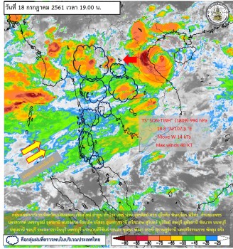 เมื่อเวลา 16.00 น. วันนี้ (18 ก.ค. 61) พายุโซนร้อน“เซินติญ” (SON-TINH) บริเวณอ่าวตังเกี๋ย มีศูนย์กลางอยู่ห่างประมาณ 250 กิโลเมตร ทางตะวันออกของเมืองวิญ ประเทศเวียดนาม มีความเร็วลมสูงสุดใกล้ศูนย์กลางประมาณ 70 กิโลเมตรต่อชั่วโมง กำลังเคลื่อนตัวทางทิศตะวันตกด้วยความเร็ว 30 กิโลเมตรต่อชั่วโมง คาดว่าจะเคลื่อนขึ้นฝั่งบริเวณเมืองวิญ ในคืนนี้ (18 ก.ค.) ซึ่งจะส่งผลกระทบทำให้ บริเวณภาคตะวันออกเฉียงเหนือและภาคเหนือ จะมีฝนตกหนักถึงหนักมากบางพื้นที่ ขอให้ประชาชนบริเวณดังกล่าว ระวังอันตรายจากฝนที่ตกหนักและฝนที่ตกสะสม ที่อาจทำให้เกิดน้ำท่วมฉับพลัน น้ำป่าไหลหลาก และน้ำล้นตลิ่งไว้ด้วย โดยมีพื้นที่ได้รับผลกระทบตามภาคต่างๆ ดังนี้ วันที่ 18 กรกฎาคม - ภาคเหนือ : จังหวัดเชียงใหม่ เชียงราย พะเยา แพร่ น่าน ลำพูน ลำปาง อุตรดิตถ์ สุโขทัย พิษณุโลก ตาก กำแพงเพชร พิจิตร และเพชรบูรณ์ - ภาคตะวันออกเฉียงเหนือ : จังหวัดเลย หนองคาย บึงกาฬ อุดรธานี หนองบัวลำภู สกลนคร นครพนม กาฬสินธุ์ มุกดาหาร อำนาจเจริญ ยโสธร ขอนแก่น ชัยภูมิ และนครราชสีมา - ภาคกลาง : จังหวัดนครสวรรค์ ลพบุรี สระบุรี สิงห์บุรี อ่างทอง และพระนครศรีอยุธยา - ภาคตะวันออก: จังหวัดนครนายก ปราจีนบุรี สระแก้ว จันทบุรี และตราด - ภาคใต้ : จังหวัดประจวบคีรีขันธ์ ชุมพร สุราษฎร์ธานี นครศรีธรรมราช ระนอง พังงา ภูเก็ต กระบี่ ตรัง และสตูล วันที่ 19 กรกฎาคม - ภาคเหนือ : จังหวัดแม่ฮ่องสอน เชียงใหม่ เชียงราย พะเยา แพร่ น่าน ลำพูน ลำปาง สุโขทัย อุตรดิตถ์ กำแพงเพชร ตาก พิษณุโลก พิจิตร และเพชรบูรณ์ - ภาคตะวันออกเฉียงเหนือ : จังหวัดเลย หนองบัวลำภู ขอนแก่น ชัยภูมิ และนครราชสีมา - ภาคกลาง : จังหวัดอุทัยธานี กาญจนบุรี สุพรรณบุรี และราชบุรี - ภาคตะวันออก : จังหวัดจันทบุรี และตราด - ภาคใต้ : จังหวัดระนอง พังงา ภูเก็ต และกระบี่ วันที่ 20 กรกฎาคม - ภาคเหนือ : จังหวัดแม่ฮ่องสอน เชียงใหม่ เชียงราย ลำพูน ลำปาง และตาก - ภาคกลาง : จังหวัดอุทัยธานี กาญจนบุรี และราชบุรี สำหรับมรสุมตะวันตกเฉียงใต้ที่พัดปกคลุมทะเลอันดามัน ประเทศไทย และอ่าวไทย มีกำลังแรง ทำให้ภาคกลาง ภาคตะวันออก และภาคใต้ มีฝนตกต่อเนื่องกับมีฝนตกหนักบางแห่ง ส่วนคลื่นลมบริเวณทะเลอันดามันและอ่าวไทยตอนบนกำลังแรง มีคลื่นสูง 2-3 เมตร บริเวณที่มีฝนฟ้าคะนองคลื่นสูงมากกว่า 3 เมตร ขอให้ชาวเรือระวังอันตรายจากคลื่นลมแรง และเรือเล็กควรงดออกจากฝั่งไว้ด้วย สำหรับประชาชนที่อาศัยอยู่บริเวณชายฝั่งภาคตะวันออกและภาคใต้ฝั่งตะวันตก ระวังอันตรายจากคลื่นลมแรงที่พัดเข้าหาฝั่งจนถึงวันที่ 22 กรกฎาคม จึงขอ