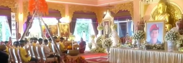 วันนี้ (19 ก.ค.) ทหารจากกองทัพภาคที่ 3 จำนวน 9 นาย ออกบวชเพื่ออุทิศส่วนบุญส่วนกุศลให้แก่ น.ต.สมาน กุนัน หรือ จ่าแซม นักทำลายใต้น้ำนอกราชการ ฮีโร่ในสถานการณ์ถ้ำหลวง ที่วัดพระธาตุดอยเวา อ.แม่สาย จ.เชียงราย โดยโค้ชเอก นายเอกพล จันทะวงษ์ ผู้ช่วยผู้ฝึกสอน และเยาวชนทีมฟุตบอลหมูป่าอะคาเดมีแม่สาย ทั้ง 13 คน พร้อมครอบครัวและญาติ เข้าร่วมในพิธีอุปสมทบอุทิศส่วนกุศลในครั้งนี้ด้วย ทั้งนี้ เมื่อช่วงนี้ ที่วัดพระธาตุดอยเวา เช่นกัน พระครูบาแสงหล้า เกจิชื่อดังของภาคเหนือ และพระครูประยุตเจติยานุการ รักษาการเจ้าอาวาสวัดพระธาตุดอยเวา ได้ทำพิธีสืบชะตาต่ออายุตามประเพณีล้านนา เพื่อความเป็นสิริมงคล แก่ทั้ง 13 คน และกรวดน้ำอุทิศส่วนกุศลแก่ น.ต.สมาน กุนัน ด้วย