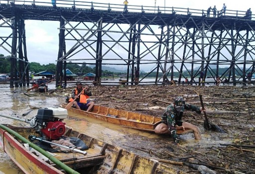 ความคืบหน้า สถานการณ์อุทกภัยใน ต.ไล่โว่ อ.สังขละบุรี จ.กาญจนบุรี ขณะนี้ ยังมีอุทกภัย ใน 3 จุด คือ จุดที่ 1 หมู่บ้านสเนพ่อง หมู่ 1 ต.ไล่โว่ ที่อยู่ห่างจากตัว อ.สังขละบุรี เกือบ 40 กิโลเมตร ถูกน้ำท่วมระดับ 1-2 เมตร เจ้าหน้าที่อพยพประชาชนประมาณ 170 ครัวเรือน หรือประมาณ 500 คน ไปอยู่ที่ศูนย์พังพิงชั่วคราว ที่องค์การบริหารส่วนตำบล หรือ อบต.ไล่โว่ ตั้งแต่เมื่อวานนี้ จุดที่ 2 หมู่บ้านเกาะสะเดิ่ง หมู่ 3 ต.ไล่โว่ ซึ่งหมู่บ้านที่อยู่ในป่าลึก เขตรักษาพันธุ์สัตว์ป่าทุ่งใหญ่นเรศวร ประชากรกว่า 300 คน ห่างจากจุดที่ 1 ประมาณ 5 กิโลเมตร แต่ถนนหนทางทุรกันดารมาก รถยนต์ไม่สามารถเข้าถึงได้ เพราะเป็นโคลนเลนตลอดเส้นทาง จะนำอากาศยานขึ้นไปบินสำรวจ แต่ยังไม่สามรถดำเนินการได้ เพราะสภาพอากาศปิด จึงส่งชุดล่วงหน้าซึ่งเป็นจักรยานยนต์วิบากเข้าไปสำรวจ และมอบสิ่งของช่วยเหลือในเบื้องต้นก่อน จุดที่ 3 สะพานอุตตมานุสรณ์ หรือ สะพานมอญ ซึ่งน้ำจากหมู่บ้านสเนพ่องและหมู่บ้านเกาะสะเดิ่ง พัดเศษไม้จำนวนมากไปติดอยู่ที่เสาสะพาน ท้องถิ่นได้ดำเนินการเก็บและแก้ไขในเบื้องต้นแล้ว สถานการณ์ทั้งหมดยังไม่มีท่าทีจะคลี่คลาย เพราะยังมีฝนตกลงมาต่อเนื่อง