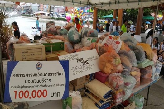 ที่ลานอนุสาวรีย์ท้าวสุรนารี หอการค้าจังหวัดนครราชสีมา ได้เปิดรับบริจาคเงิน สิ่งของ ข้าวสาร อาหารแห้ง และเสื้อผ้า เพื่อรวบรวมส่งไปช่วยเหลือประชาชนชาวลาวที่ประสบ อุทกภัย หลังเขื่อนเซเปียน-เซน้ำน้อยแตก โดยจะเปิดรับบริจาควันนี้จนถึงวันพรุ่งนี้ (27 ก.ค.) เบื้องต้นหอการค้าจังหวัดนครราชสีมาได้บริจาคเงินจำนวน 1 แสนบาท และมีชาวนครราชสีมา ทยอยนำเงินสด ข้าวสาร อาหารแห้ง และเสื้อผ้าจำนวนมาก มาร่วมบริจาคไม่ขาดสาย ด้านพลโท ธรากร ธรรมวินทร แม่ทัพภาคที่ 2 สั่งการให้กำลังพล นำเรือท้องแบน ครัวสนาม รถผลิตน้ำดื่ม และแพทย์ทหาร ศูนย์บรรเทาสาธารณภัยมณฑลทหารบกที่ 22 อุบลราชธานี เตรียมความพร้อมในที่ตั้งตลอด 24 ชั่วโมง หากมีการร้องขอ สามารถออกให้ความช่วยเหลือ ราษฎรชาวลาวที่ได้รับผลกระทบจากอุทกภัยเขื่อนเซเปียน-เซน้ำน้อยแตก ส่วนทีมงานหน่วยเฉพาะกิจช่วยเหลือผู้ประสบภัยทางน้ำ (ส่วนหน้าชุดที่1) ฮุก31 นครราชสีมา และชมรมดำน้ำโคราช ซึ่งเป็นชุดที่ไปช่วยทีมหมูป่าอะคาเดมี่แม่สาย ออกจากถ้ำหลวง- ขุนน้ำนางนอน จ.เชียงราย เดินทางถึงเมืองปากเซ สปป.ลาวแล้ว โดยอยู่ระหว่างวางแผน ร่วมกับเจ้าหน้าที่หน่วยกู้ภัยจี้กง จ.อุบลราชธานี และกู้ภัยชุมแพ จ.ขอนแก่น รวมทั้ง กู้ภัยเมตตาธรรมและอาสาหน่วยต่างๆ เพื่อวางแผนค้นหาประชาชน จำนวน 15 ครัวเรือน ที่ขาดการติดต่อ โดยประสานจากญาติพี่น้องของผู้ประสบภัยในเมืองปากซอง ขณะนี้ ได้เริ่มปฏิบัติการค้นหาผู้ขาดการติดต่อเป็นการเร่งด่วนแล้ว