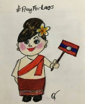 กรณี เขื่อนเซเปียน-เซน้ำน้อย บนที่ราบสูงบอละเวน แขวงอัตตะปือ ทางตอนใต้ของ สปป.ลาว เกิดรอยแตกบริเวณสันเขื่อน ส่งผลให้มวลน้ำกว่า 5 พันล้านลูกบาศก์เมตร ไหลทะลักท่วมหลายหมู่บ้านจนเสียหายอย่างหนัก อีกทั้งมีผู้เสียชีวิตและสูญหายจำนวนมาก วันนี้ (26 ก.ค.) ทูลกระหม่อมหญิงอุบลรัตนราชกัญญา สิริวัฒนาพรรณวดี ทรงโพสต์ อินสตาแกรมส่วนพระองค์ nichax เป็นภาพฝีพระหัตถ์ รูปผู้หญิงในชุดผ้าซิ่นทัดดอกจำปาลาว ดอกไม้ประจำชาติลาว ในมือถือธงชาติ สปป.ลาว พร้อมข้อความว่า #PrayForLaos และลายพระนาม พร้อมกันนี้ ยังทรงโพสต์ข้อความว่า “nichax ขอส่งกำลังใจให้พี่น้องชาวลาว จากเหตุการณ์เขื่อนแตกในคราวนี้ #PrayForLaos นอกจากส่งกำลังใจ เราก็รวมใจส่งความช่วยเหลือไปเท่าที่จะทำได้ และขอให้ภาพนี้ที่เขียนเองเป็นกำลังใจให้สู้! สู้!”