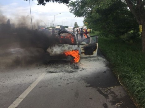 อุบัติเหตุเกิดขึ้นเมื่อเวลา 12.45 น. บนถนนบายพาสหัวหิน จ.ประจวบคีรีขันธ์ บริเวณ แยกตลาดน้ำ วัดห้วยมงคล โดยรถบรรทุกทะเบียนจันทบุรี พุ่งชนท้ายรถยนต์เก๋ง จนทำให้ไฟลุกไหม้ท่วมทั้งคัน คนในรถ 8 คน ทั้งเด็กและผู้ใหญ่ ต่างหนีเอาตัวรอดออกมาได้ แต่ได้รับบาดเจ็บทั้งหมด คนขับรถบรรทุกบอกว่า เบรคไม่ทัน จึงขับพุ่งชนท้ายรถเก๋งโตโยต้าวีออส ทะเบียนกรุงเทพมหานคร ขณะติดไฟแดง ก่อนไฟลุกไหม้ คนในรถเก๋งทั้ง 8 คน ต่างรีบหนีลงมาจากรถได้ทัน แต่ได้รับบาดเจ็บ มีบาดแผลฉีกขาด ถูกแรงกระแทก และถูกไฟลวก เจ้าหน้าที่เร่งช่วยเหลือนำส่งโรงพยาบาลใกล้เคียง อุบัติเหตุที่เกิดขึ้น ส่งผลให้การจราจรติดขัดอย่างหนัก เพราะมีรถนักท่องเที่ยวเดินทางจำนวนมาก ( ภาพ จาก จส.100)