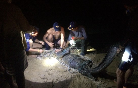ความคืบหน้าการติดตามจระเข้ที่พบที่ชายหาดยะนุ้ย ต.ราไวย์ อ.เมืองภูเก็ต ตั้งแต่ วันที่ 18 ก.ค.ที่ผ่านมา ล่าสุด วันนี้ (29 ก.ค.) เวลา 03.30 น. เจ้าหน้าที่ชุดติดตามจระเข้ ร่วมเดินเท้าส่องไฟสำรวจตลอดแนวชายหาดลายัน–เลพัง ก่อนพบดวงตาจระเข้ หลบอยู่ หลังโขดหิน ที่ปากคลองลายัน ด้านหลังเกาะกระทะ ภายในหน่วยพิทักษ์อุทยานแห่งชาติ หาดลายัน ต.เชิงทะเล อ.ถลาง เจ้าหน้าที่จึงวางแผนนำอวนที่มีความยาวจำนวน 3 ชั้น เข้าล้อม ก่อนใช้เชือกคล้องปากของจระเข้ โดยใช้เวลาเข้าล้อมจับตัวประมาณ 1 ชั่วโมง จึงสามารถจับตัวได้ ก่อนนำส่งศูนย์วิจัยและพัฒนาประมงชายฝั่ง บ้านพารา ม.4 ตำบล ป่าคลอก อำเภอถลาง โดยมีนายนรภัทร ปลอดทอง ผู้ว่าราชการจังหวัดภูเก็ต และ นายกองโทอดุลย์ ชูทอง นายอำเภอถลาง เดินทางไปตรวจสอบ จากการตรวจสอบ พบว่าจระเข้ตัวดังกล่าว เป็นเพศเมีย มีความยาว 2.5 เมตร ยังไม่ชัดเจนว่าเป็นจระเข้น้ำเค็มหรือพันธุ์ผสม ต้องรอตรวจพิสูจน์เลือดอีกครั้ง อย่างไรก็ตาม ภายหลังเจ้าหน้าที่สแกนไมโครชิพบนตัวจระเข้แล้ว ไม่พบไมรโครชิพ จึงยืนยันได้ว่าไม่ใช่จระเข้เลี้ยง แต่จะมาจากที่ใดนั้นต้องรอตรวจสอบอีกครั้ง