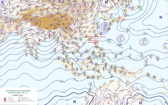 กรมอุตุนิยมวิทยา พยากรณ์อากาศ 24 ชั่วโมงข้างหน้า ประเทศไทยมีแนวโน้มฝนลดลง โดยพื้นที่ที่มีฝนส่วนมากอยู่บริเวณตอนบนของภาคเหนือ ภาคตะวันออกเฉียงเหนือ และ ด้านตะวันตกของประเทศ สำหรับบริเวณทะเลอันดามัน มีคลื่นสูงประมาณ 2 เมตร ขอให้ ชาวเรือเดินเรือด้วยความระมัดระวังในระยะนี้ ส่วนกรุงเทพมหานครและปริมณฑล มีเมฆเป็นส่วนมาก กับมีฝนฟ้าคะนอง ร้อยละ 40 ของพื้นที่