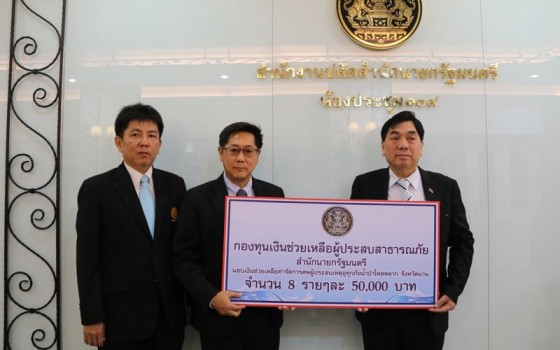 นายสมพาศ นิลพันธ์ รองปลัดสำนักนายกรัฐมนตรี มอบเงินจากเงินกองทุนช่วยเหลือ ผู้ประสบภัย ให้กับครอบครัวผู้เสียชีวิตจากเหตุน้ำป่าไหลหลากและดินโคลนถล่ม ที่ อ.บ่อเกลือ จ.น่าน ผ่านกรมป้องกันและบรรเทาสาธารณภัย หรือ ปภ.เพื่อนำไป ช่วยเหลือผู้ประสบภัยจำนวน 8 ราย รายละ 50,000 บาท ซึ่งเงินดังกล่าวเป็นเงินบริจาค ของคนไทยทั่วประเทศ ที่จะนำออกมาใช้ในทุกเหตุฉุกเฉินของประเทศไทย สำหรับกรณีที่ประสบภัยบ้านพังทั้งหลัง กองทุนจะจ่ายค่าวัสดุซ่อมแซมบ้าน หลังละ ไม่เกิน 230,000 บาท หากบ้านเสียหายมาก หลังละไม่เกิน 70,000 บาท และเสียหาย เล็กน้อย หลังละไม่เกิน 15,000 บาท ซึ่งเงินช่วยเหลือดังกล่าวสามารถเบิกจ่ายได้ทันที ขณะนี้มีเงินคงเหลือในบัญชีกองทุนประมาณ 800ล้านบาท และรัฐบาลยังคงรับบริจาค เพิ่มเติมอย่างต่อเนื่อง สามารถสมทบทุนได้ที่กองทุนเงินช่วยเหลือผู้ประสบสาธารณภัย สำนักนายกรัฐมนตรี บัญชีออมทรัพย์ ธนาคารกรุงไทย เลขที่บัญชี 0670068950