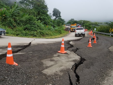 ความคืบหน้าถนนทางขึ้นภูทับเบิก อ.หล่มเก่า จ.เพชรบูรณ์ ทรุดเป็นร่องลึกจุดใหญ่ๆ ถึง 4 จุด บริเวณหมู่ 8 บ้านดอยน้ำเพียงดิน ต.บ้านเนิน โดยแขวงทางหลวงเพชรบูรณ์ที่ 1 ระดมเจ้าหน้าที่ พร้อมเครื่องจักรกล ทำการซ่อมแซมจนรถสามารถผ่านได้ตามปกติ ล่าสุด วันนี้ ( 2 ส.ค.) ดินเกิดการสไลด์ตัวและทรุดอย่างต่อเนื่อง นายอลงกรณ์ พรหมศิลป์ ผู้อำนวยการแขวงทางหลวงเพชรบูรณ์ที่ 1 และผู้เกี่ยวข้อง ลงพื้นที่ตรวจสอบ พบว่าจุดที่ดำเนินการซ่อมแซมจนเสร็จเรียบร้อยแล้วเมื่อวาน ในวันนี้ ยังพบร่องรอยของการทรุดของถนน เมื่อวานทรุดเพียง 50 - 80 เซนติเมตร แต่มาวันนี้ ทรุดลึกลงไปอีกประมาณ 1 เมตร จากการวิเคราะห์สภาพดินและสภาพแวดล้อมคาดว่า น่าจะยังคงมีการสไลด์อย่างต่อเนื่องอีก เพื่อความปลอดภัยของผู้ที่ใช้เส้นทางดังกล่าว จึงมีความเห็นให้ปิดเส้นทางดังกล่าว โดยห้ามไม่ใช้รถทุกชนิดผ่านโดยเด็ดขาด และขอให้ รถยนต์นักท่องเที่ยวและรถกระบะบรรทุกพืชผักของชาวบ้าน เลี่ยงไปใช้เส้นทางหลวง สาย 12 แยกบ้านแยง อ.นครไทย แทน จนกว่าจะดำเนินการซ่อมแซมและแก้ไขเส้นทาง ดังกล่าวจนปลอดภัยดีแล้ว จึงจะเปิดให้ใช้สัญจรอีกครั้งหนึ่ง