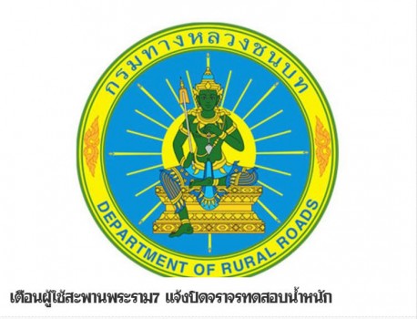 กรมทางหลวงชนบท โดยสำนักบำรุงทาง ว่าจ้าง บริษัท ทริโอ ไบรท์ จำกัด ดำเนินโครงการบูรณะทางหลวงชนบทสายหลัก สะพานพระราม 7 โดยจะทดสอบความสามารถในการรับน้ำหนักบรรทุกของสะพานพระราม 7 ประกอบการตรวจวัดพฤติกรรมของโครงสร้างสะพาน ภายหลังการติดตั้งวัสดุเสริมกำลังโครงสร้างสะพานแล้วเสร็จ ในการดำเนินงานทดสอบการรับน้ำหนักบรรทุกสะพาน จำเป็นต้องปิดการจราจร บนสะพานพระราม 7 ฝั่งทิศทางถนนวงศ์สว่างมุ่งหน้าถนนจรัญสนิทวงศ์ (ขาออก) เป็นระยะเวลาสั้น ๆ ในคืนนี้ (5 ส.ค.) เวลา 22.00 น. ถึงเช้าพรุ่งนี้(6 ส.ค.) เวลา 04.00 น. ทั้งนี้ พิจารณาตามปริมาณจราจรเป็นหลัก โดยมีเจ้าหน้าที่ตำรวจจราจรในพื้นที่ ร่วมอำนวยการจราจร จึงขอความร่วมมือประชาชนโปรดหลีกเลี่ยงเส้นทางการจราจร ในวันและเวลาดังกล่าว และขออภัยในความไม่สะดวกมา ณ ที่นี้ รายละเอียดเพิ่มเติมติดต่อสอบถามได้ที่ ผู้ควบคุมงานโครงการ หมายเลขโทรศัพท์ 086-993-8173