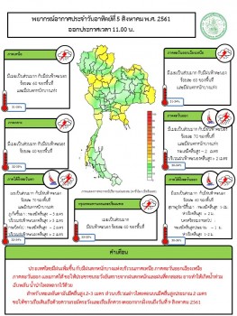 ประกาศกรมอุตุนิยมวิทยา "คลื่นลมแรงบริเวณภาคใต้ และฝนตกหนักบริเวณประเทศไทย " ฉบับที่ 5 ช่วงวันที่ 5-9 ส.ค. ประเทศไทยจะมีฝนเพิ่มขึ้นและมีฝนตกหนักบางแห่ง บริเวณภาคเหนือ ภาคตะวันออกเฉียงเหนือ ภาคกลาง ภาคตะวันออก และภาคใต้ ขอให้ประชาชนบริเวณดังกล่าวระวังผลกระทบจากฝนตกหนักและฝนตกสะสม ที่อาจทำให้เกิดน้ำท่วมฉับพลัน น้ำป่าไหลหลาก น้ำล้นตลิ่ง และดินโคลนถล่มไว้ด้วย สำหรับคลื่นลมบริเวณทะเลอันดามันจะมีคลื่นสูง 2-3 เมตร และอ่าวไทยตอนบนคลื่นสูงประมาณ 2 เมตร ขอให้ชาวเรือเดินเรือด้วยความระมัดระวัง และเรือเล็กควรงดออกจากฝั่ง ช่วงเวลาดังกล่าว สำหรับประชาชนที่อาศัยอยู่บริเวณชายฝั่งภาคใต้ฝั่งตะวันตก และภาคตะวันออก ให้ระวังคลื่นที่พัดเข้าหาฝั่งไว้ด้วย เนื่องจากร่องมรสุมพาดผ่านภาคเหนือ และภาคตะวันออกเฉียงเหนือตอนบน ประกอบกับ มรสุมตะวันตกเฉียงใต้ที่พัดปกคลุมทะเลอันดามัน ประเทศไทย และอ่าวไทย มีกำลังแรงขึ้น ลักษณะเช่นนี้จะทำให้ประเทศไทยมีฝนเพิ่มขึ้น กับมีฝนตกหนักบางแห่ง สำหรับคลื่นลมบริเวณทะเลอันดามันและอ่าวไทยตอนบนมีกำลังแรง จึงขอให้ประชาชนติดตามประกาศจากกรมอุตุนิยมวิทยาอย่างใกล้ชิด และติดตามข้อมูลที่เว็บไซต์กรมอุตุนิยมวิทยา http://www.tmd.go.th หรือ สายด่วนพยากรณ์อากาศ 1182 ได้ตลอด 24 ชั่วโมง