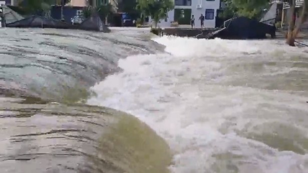 ที่บริเวณหมู่ 1 ต.แก่งกระจาน จ.เพชรบุรี ซึ่งเป็นพื้นที่รับน้ำต่อจากสปิลเวย์ท้ายเขื่อน แก่งกระจานโดยตรง อยู่ห่างจากสปิลเวย์ประมาณ 1 กม. เช้านี้ น้ำท่วมเพิ่มสูงขึ้นจาก เมื่อวาน (7 ส.ค.) กระแสน้ำไหลแรง ถนนคอนกรีตเข้ารีสอร์ทถูกตัดขาด ไม่สามารถ เดินข้ามไปได้ กำแพงคอนกรีตถูกน้ำเซาะพัง ขณะที่ตลิ่งริมน้ำก็ถูกน้ำกัดเซาะเพิ่มมากขึ้น โดยน้ำจากจุดนี้จะไหลไปรวมกับแม่น้ำเพชรบุรี เพื่อส่งต่อไปเขื่อนเพชรบุรี ผ่าน อ.บ้านลาด ท่ายาง และไปที่ อ.เมืองเพชรบุรี ก่อนส่งไปถึงบ้านแหลม ออกสู่อ่าวไทย จากการตรวจสอบ มีการระบายน้ำเหนือสปิลเวย์ล้นออกมามากกว่า 50 ซม. คาดว่า ปริมาณน้ำที่ไหลล้นสปิลเวย์จะเพิ่มสูงขึ้นอย่างต่อเนื่อง